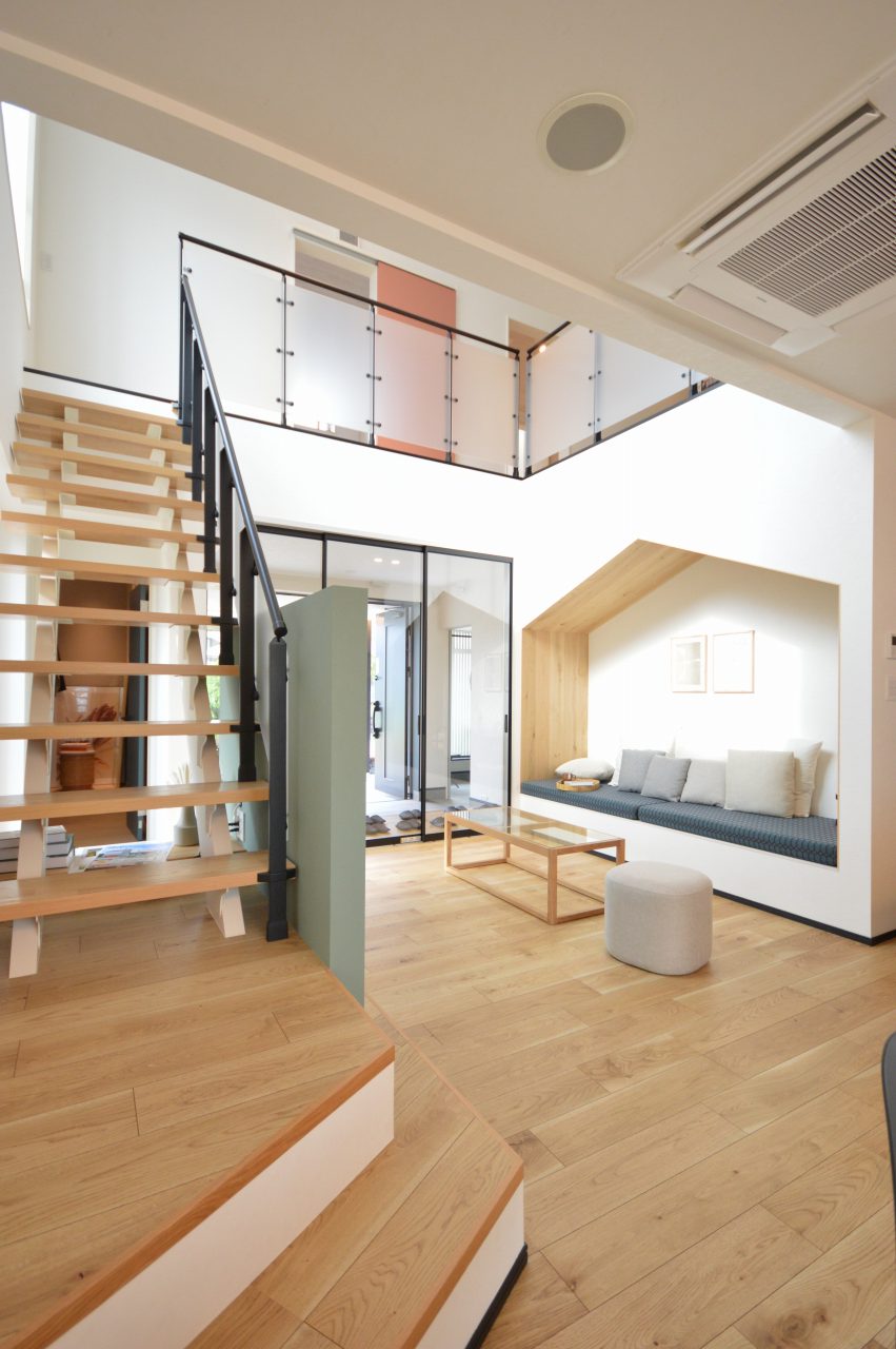 ヌック的ソファーを配置したリビング空間。