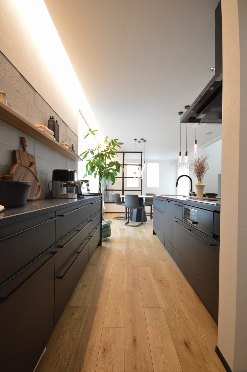 デザイン性のあるインテリアキッチンながら収納の機能性も付加。
