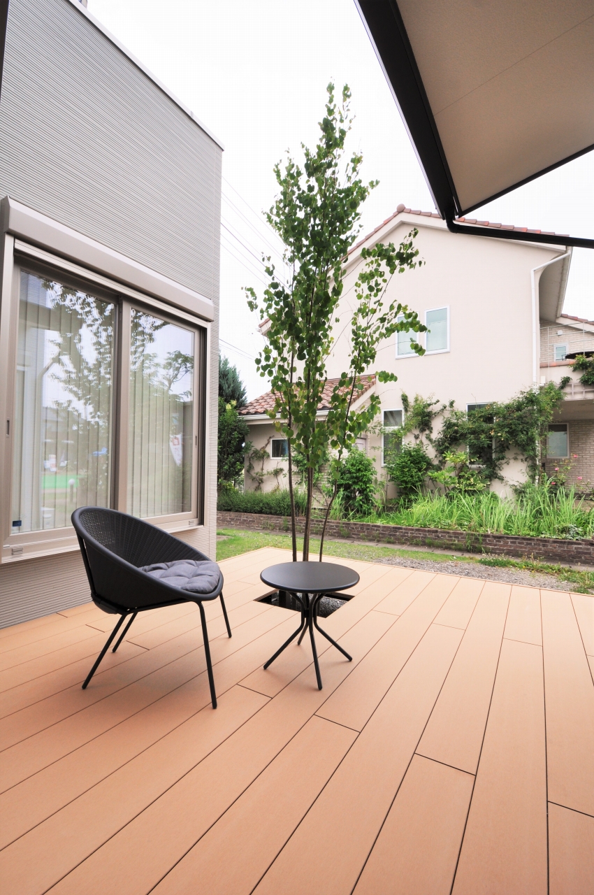 天気の良い日に外と繋がるウッドデッキ空間。