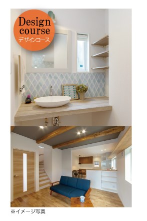 「デザインコース」・・・造作洗面台&無垢の床(リビング)