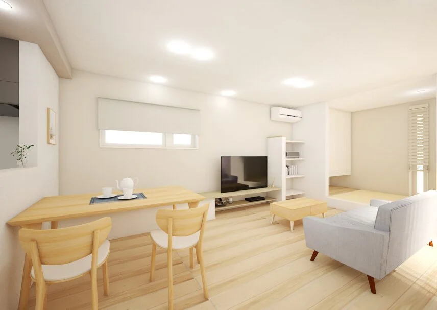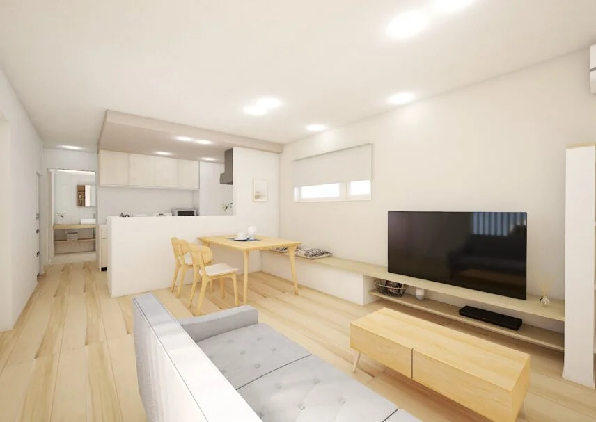 ✓造作ベンチ&TV台でスッキリ家具いらず