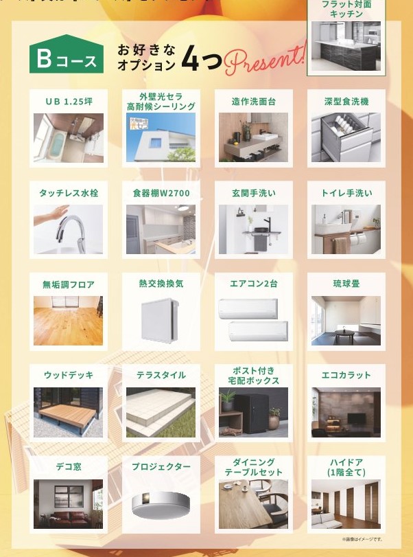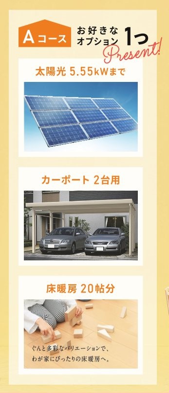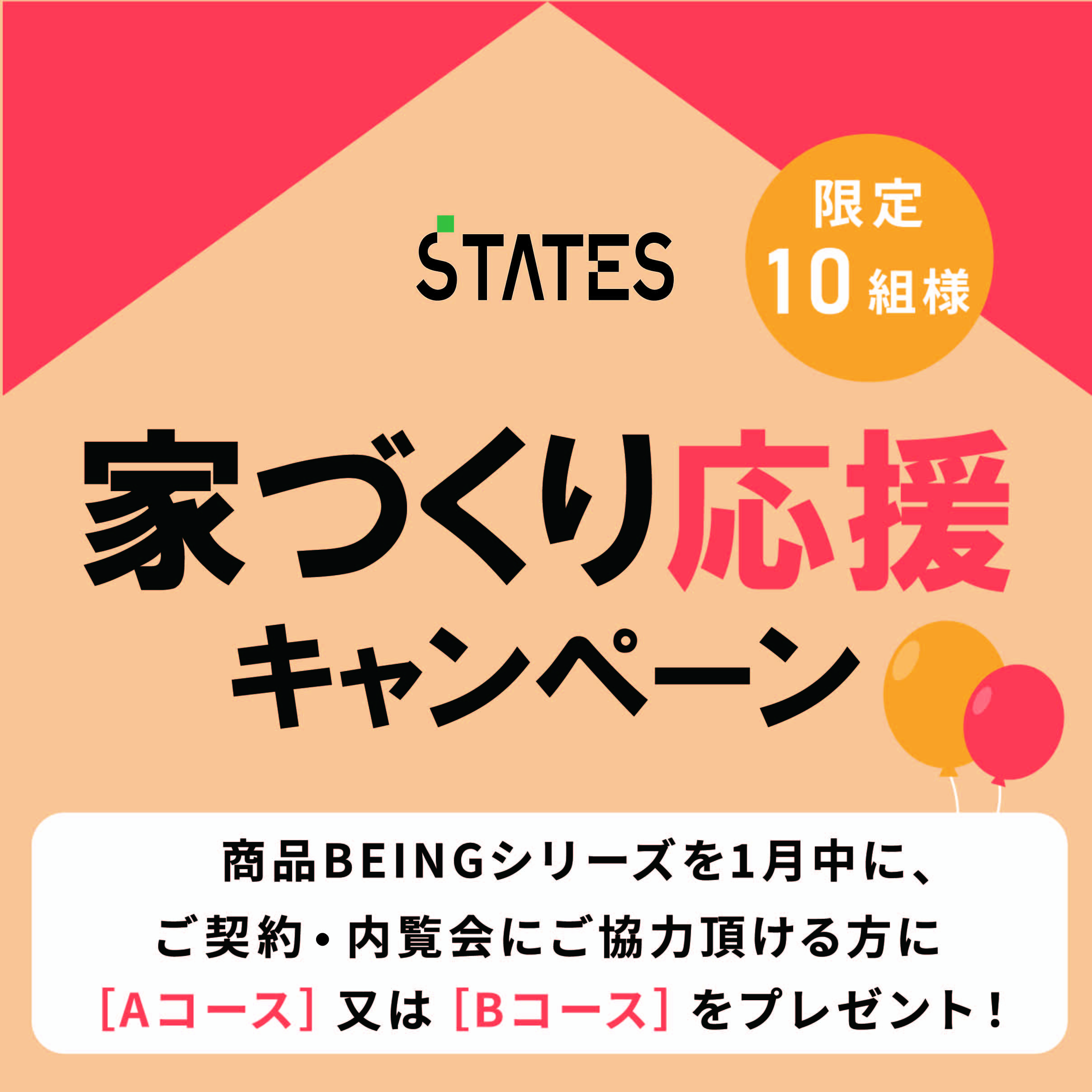期間中、商品BEINGシリーズを1月中にご契約・内覧会にご協力頂ける方に「Aコース」「Bコース」どちらかの商品を『10組様』にプレゼント!
