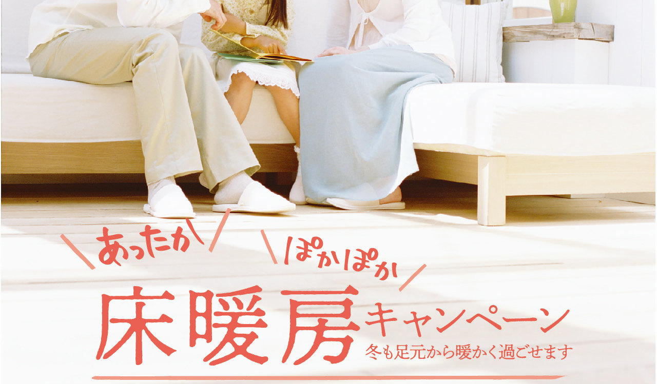 ただいま弊社自由設計商品にて新築住宅をご契約いただいた方を対象に、床暖房プレゼントキャンペーンを開催中です。