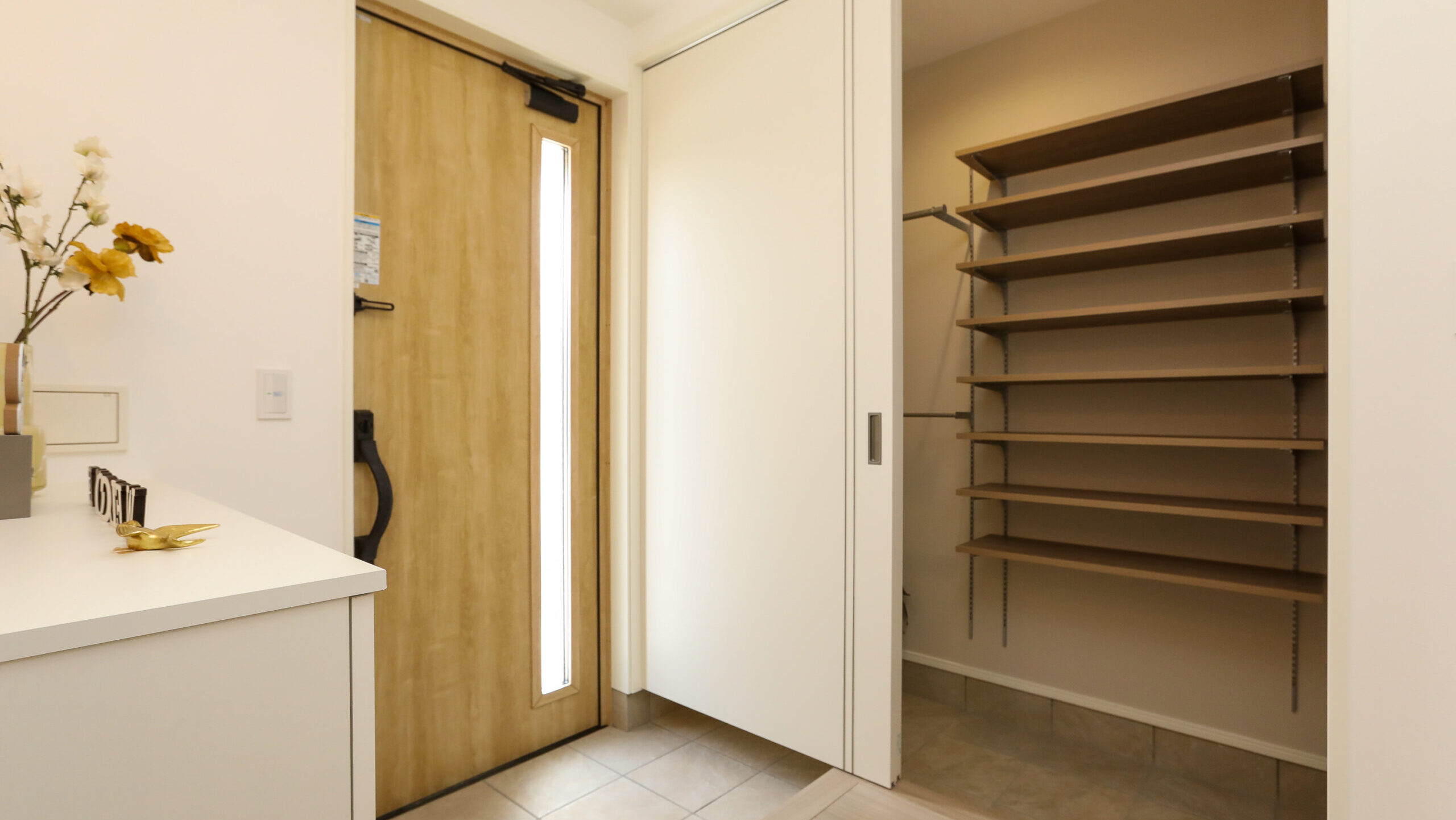 さらに、脱衣・サンルームにはスライド式の物干しを採用し、室内干しも快適に。