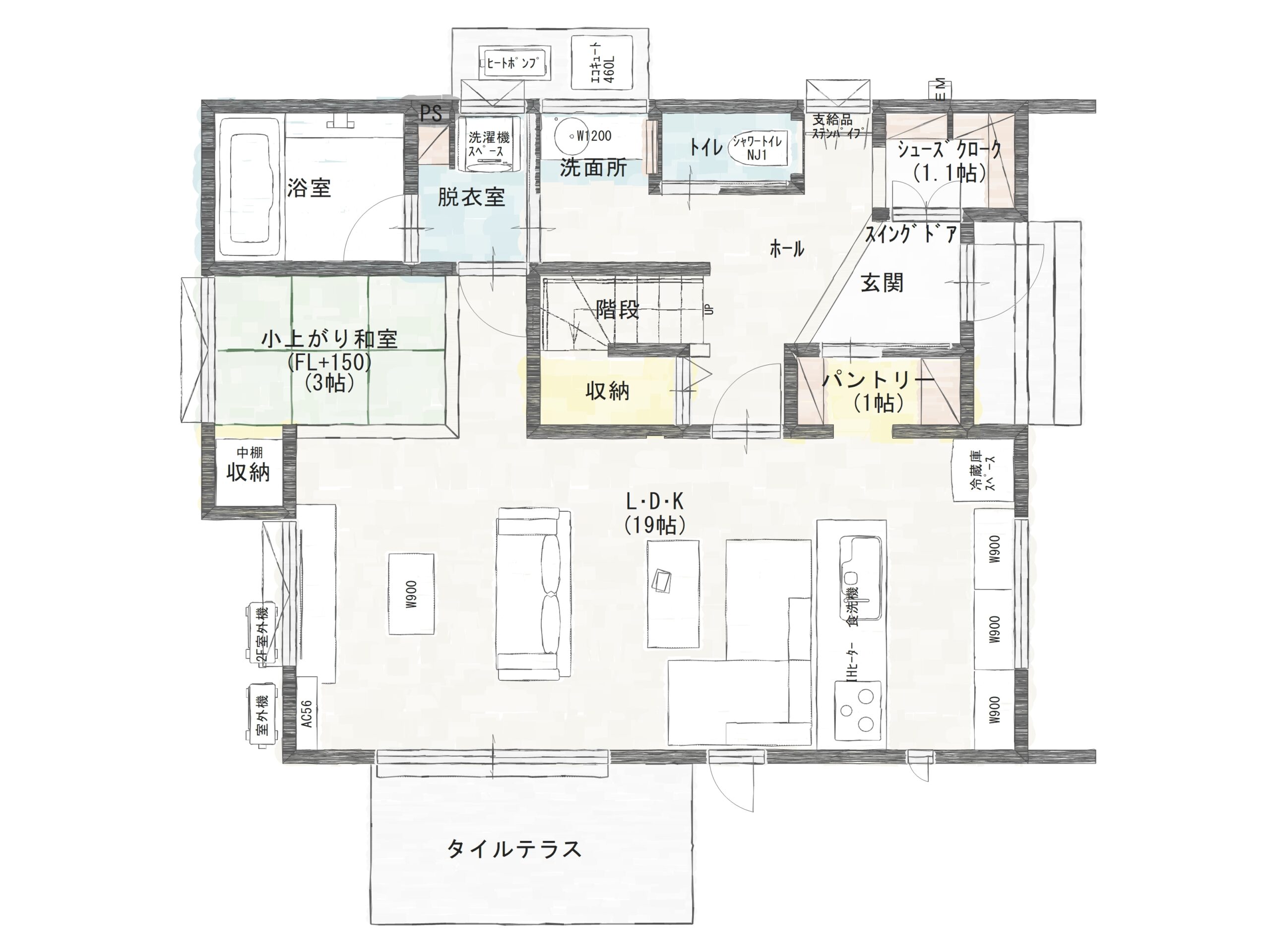家事ラクな回遊動線のおかげで負担軽減や時短もでき、理想的な収納を要所に設計したので、QOLが向上できるプランです。