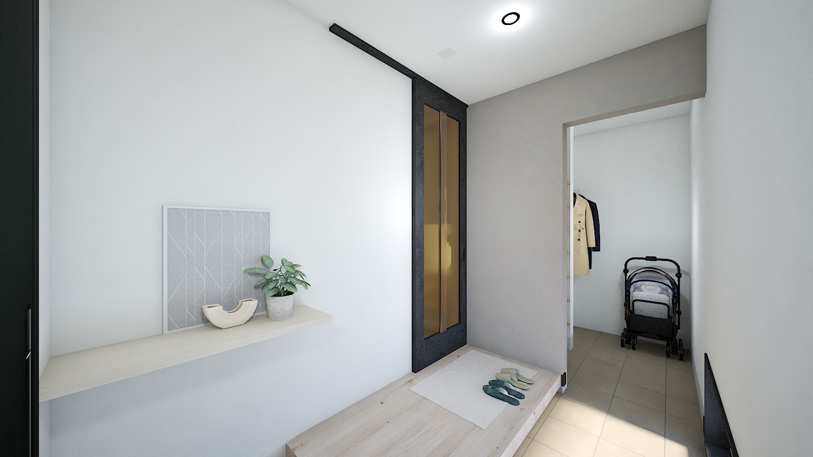 土間の広い縦長の玄関は、自転車やベビーカーも収納可能!