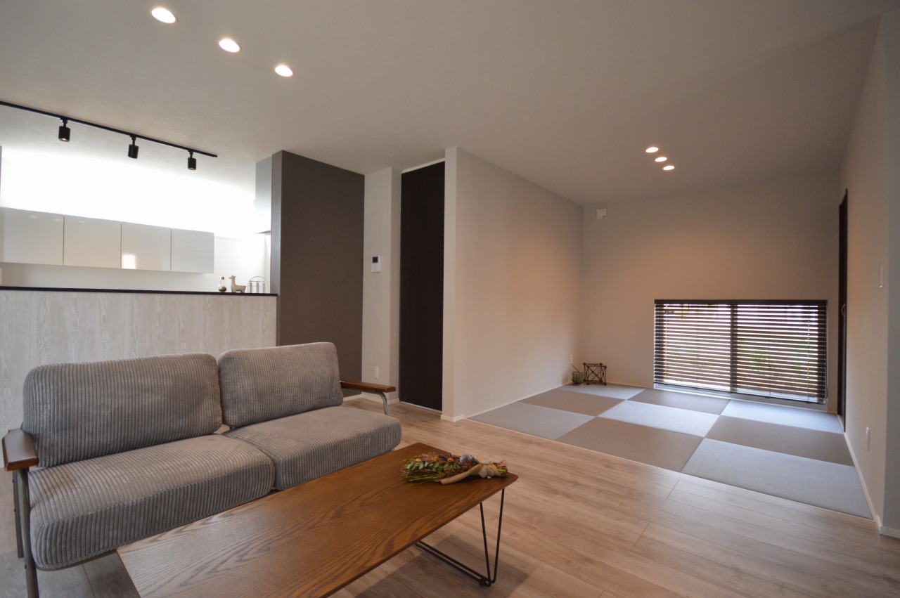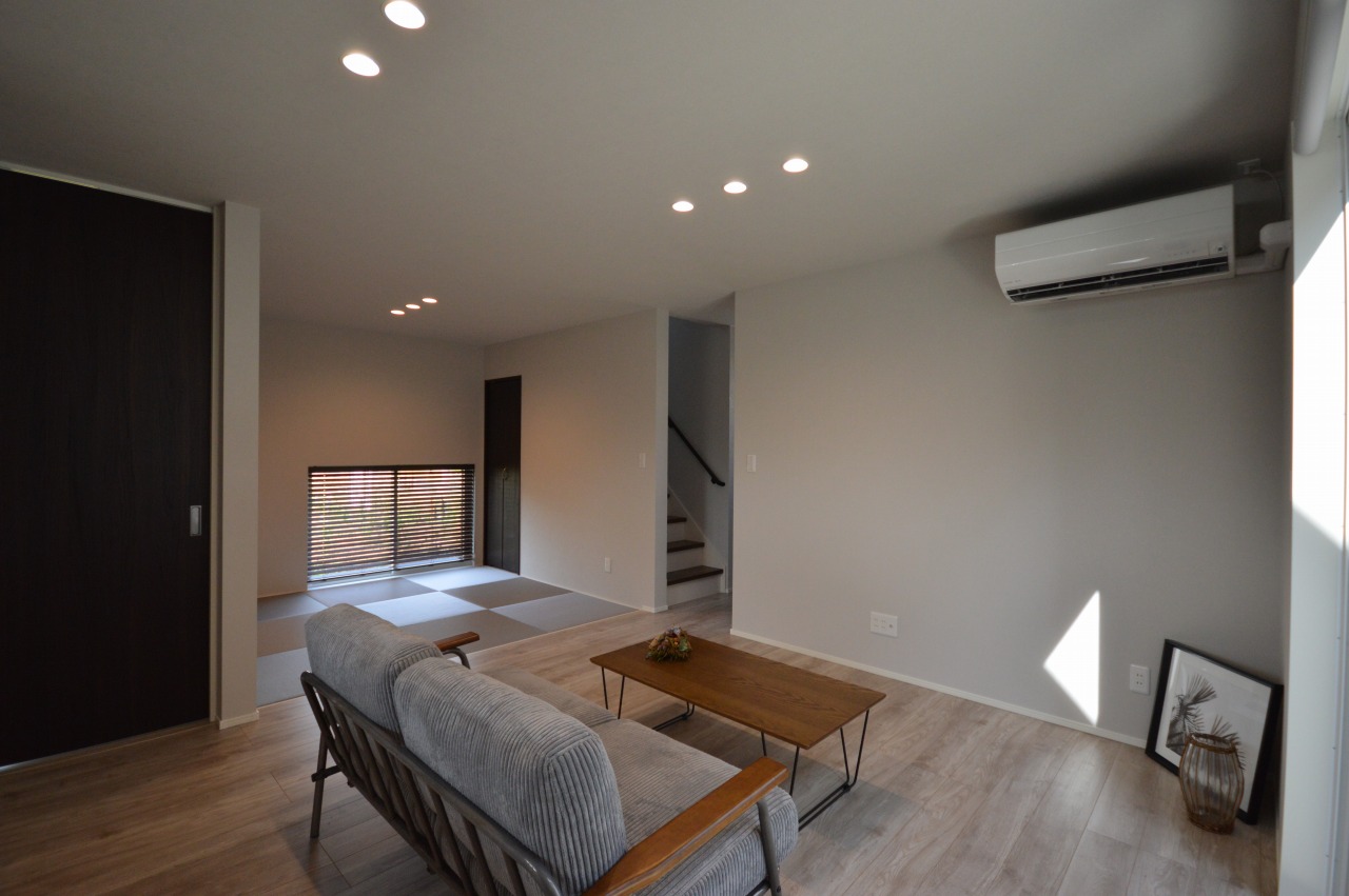 屋内も和室を合わせて22帖の開放的な空間からテラスへ視線が抜け、