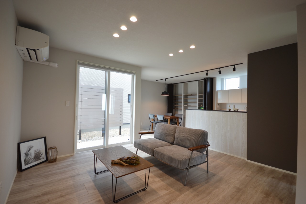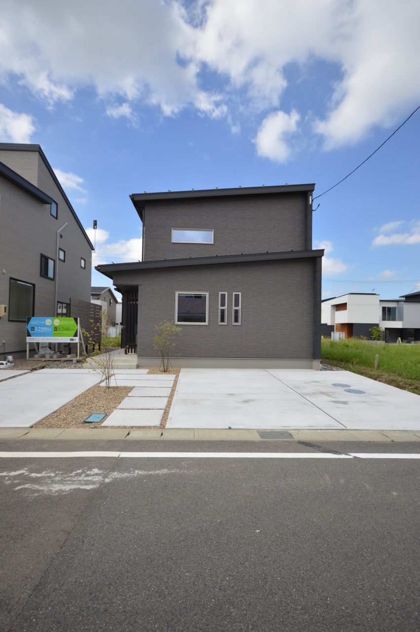 三条市上須頃(グリーンガーデン燕三条ステーション分譲地内)に建つ、まちなかモデルハウス。