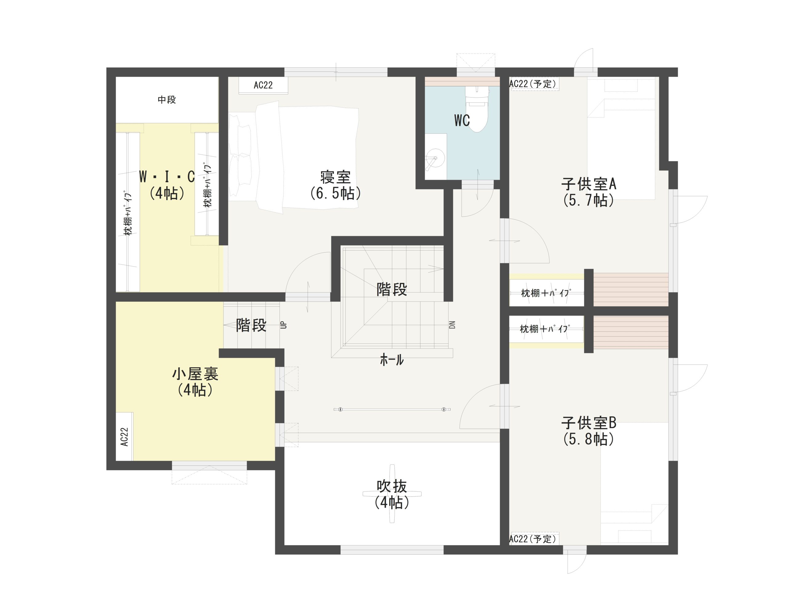 2階ホールから上がれる小屋裏収納は5段だけ上がれば到着する面白い位置の空間に。