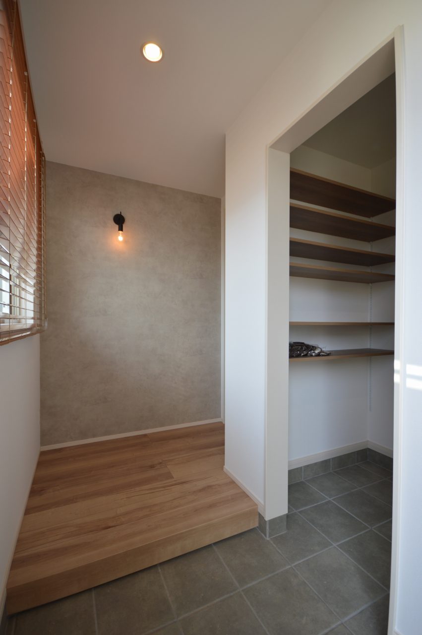 おしゃれな照明とシューズクロークへと繋がる玄関。