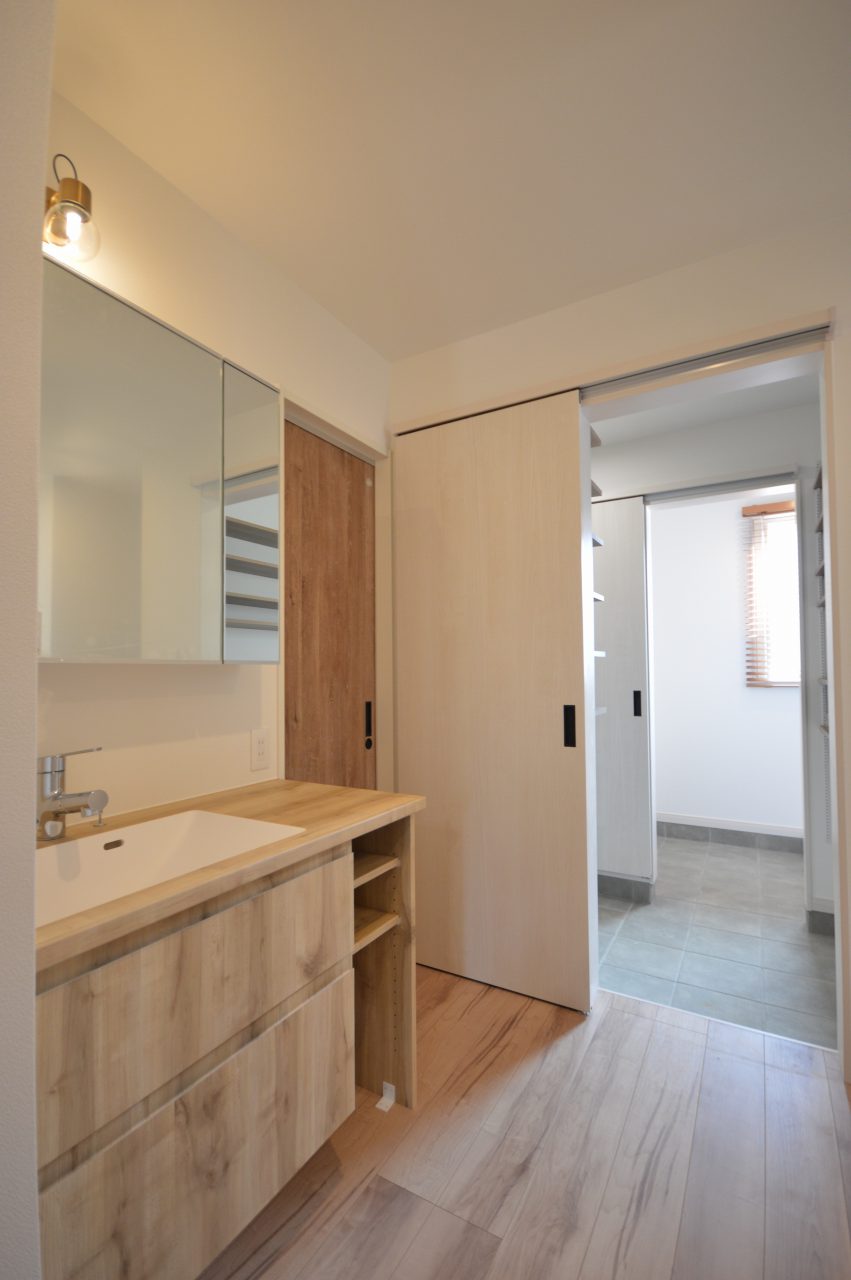 帰宅時のお帰り動線も、玄関→シューズクローク→洗面・トイレ→ランドリー→キッチンと、全てストレートに繋がる動線も。