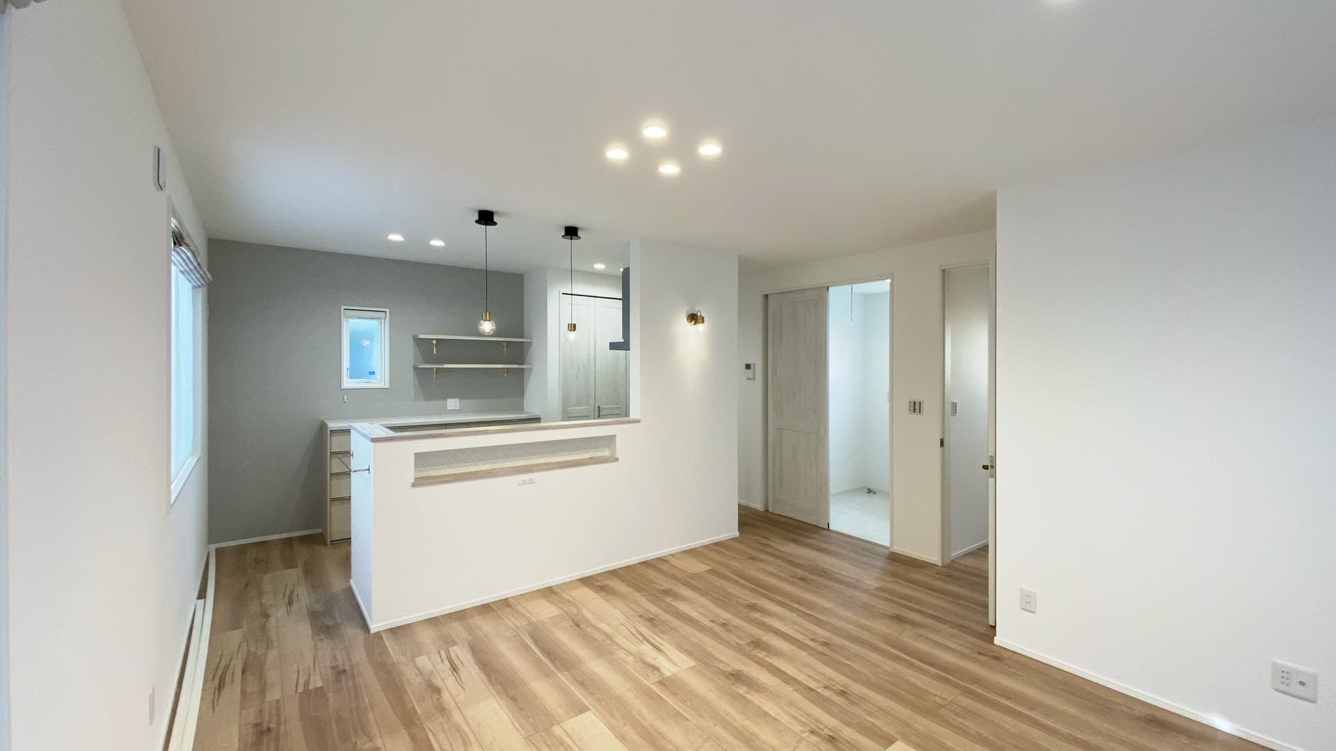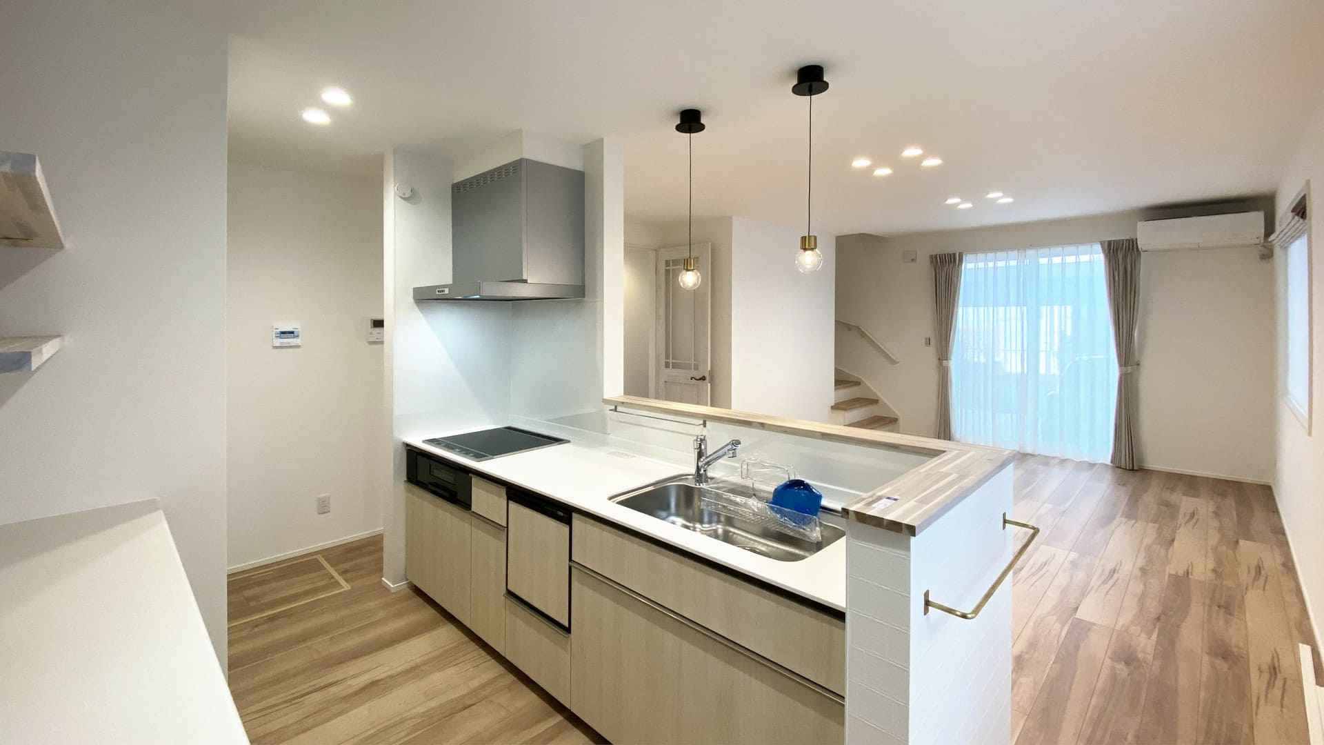 LDKは17.5帖。天井高を2.5mと高めにする事でより開放的な居住空間に。ペニンシュラ型キッチンは左右どちらからでも回れるので家事効率もグーンとUP!
