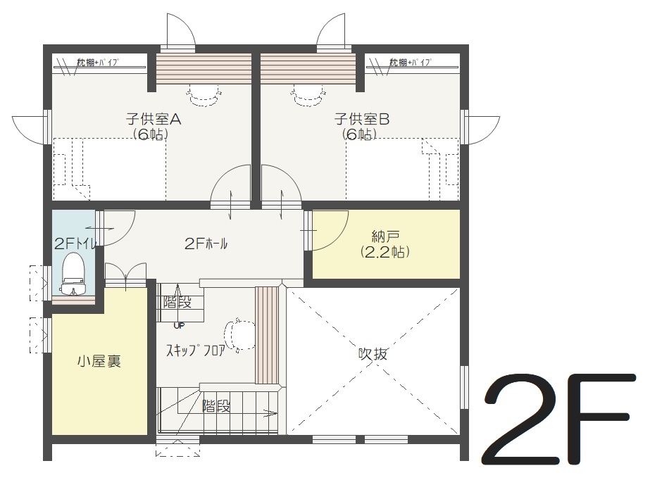 家族のコミュニケーションを育むスキップフロアと2階に小屋裏収納のある住まい