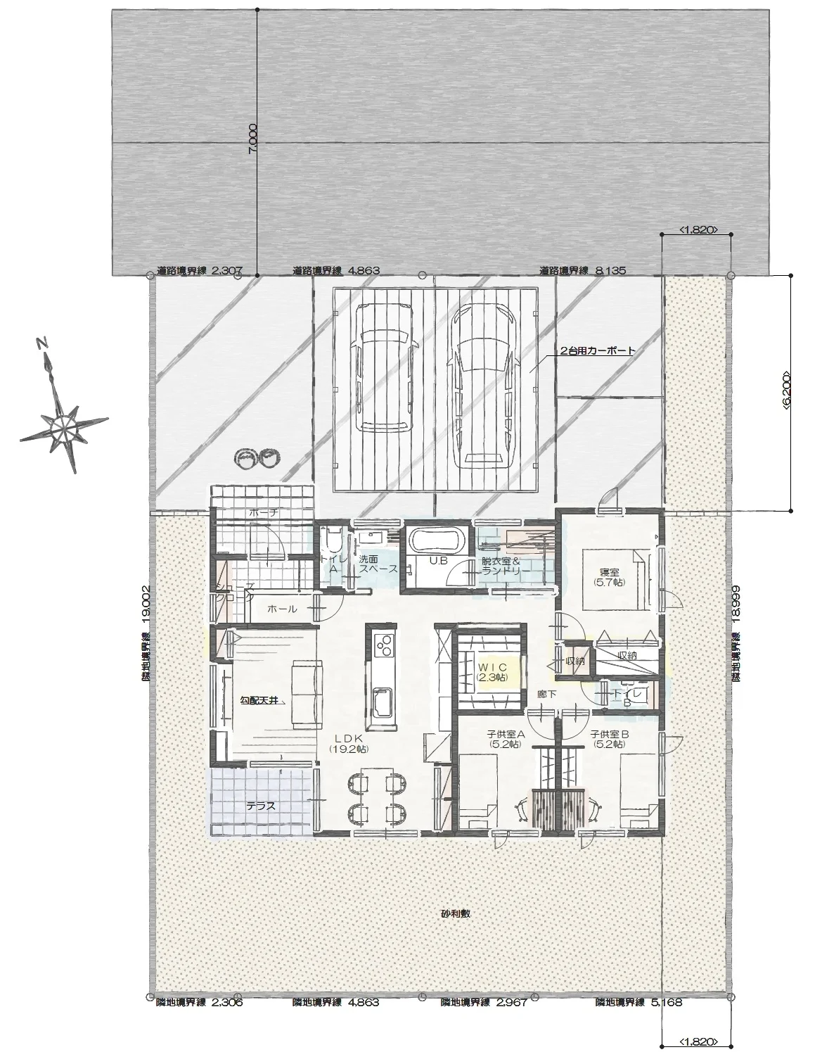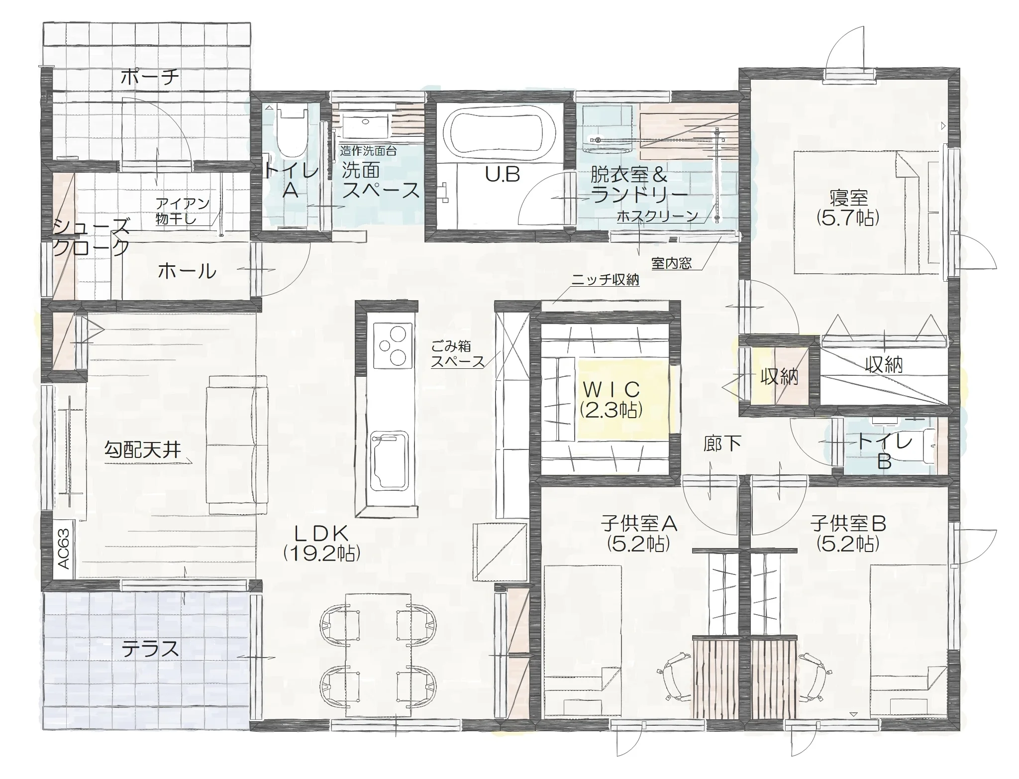 さらに、家の中心に配置されたウォークインクローゼットは、キッチン・脱衣室・寝室からのアクセスも良好◎