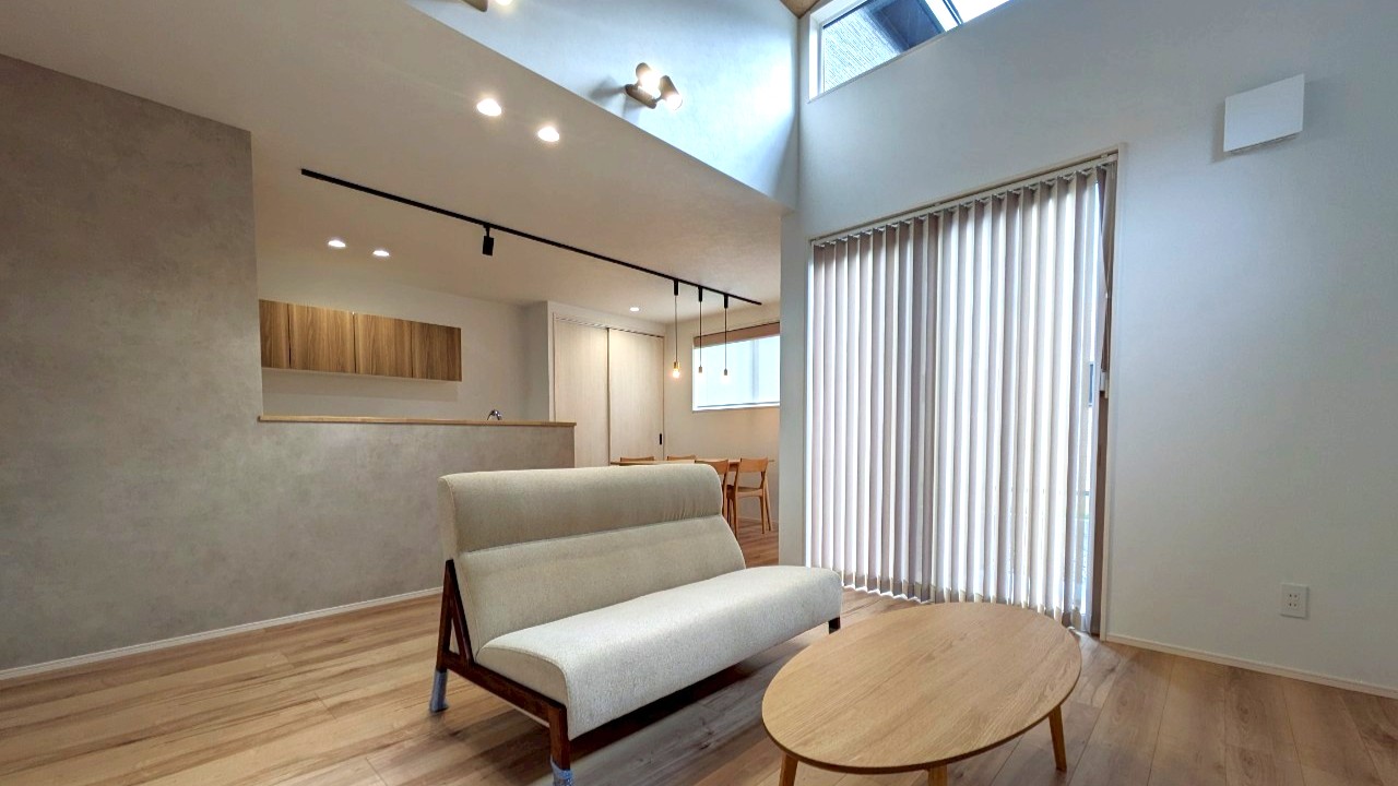 天井が高く、開放感たっぷりの“勾配天井”がアクセントの内観