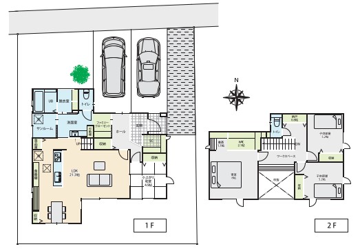 使い方自由なワークスペースや多くの収納スペースを設け、
