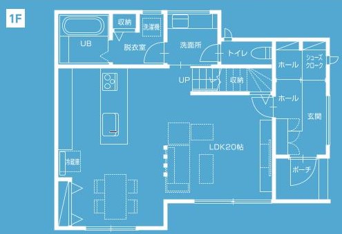 20帖の広々LDKで家族そろって団らんを楽しんだりと
