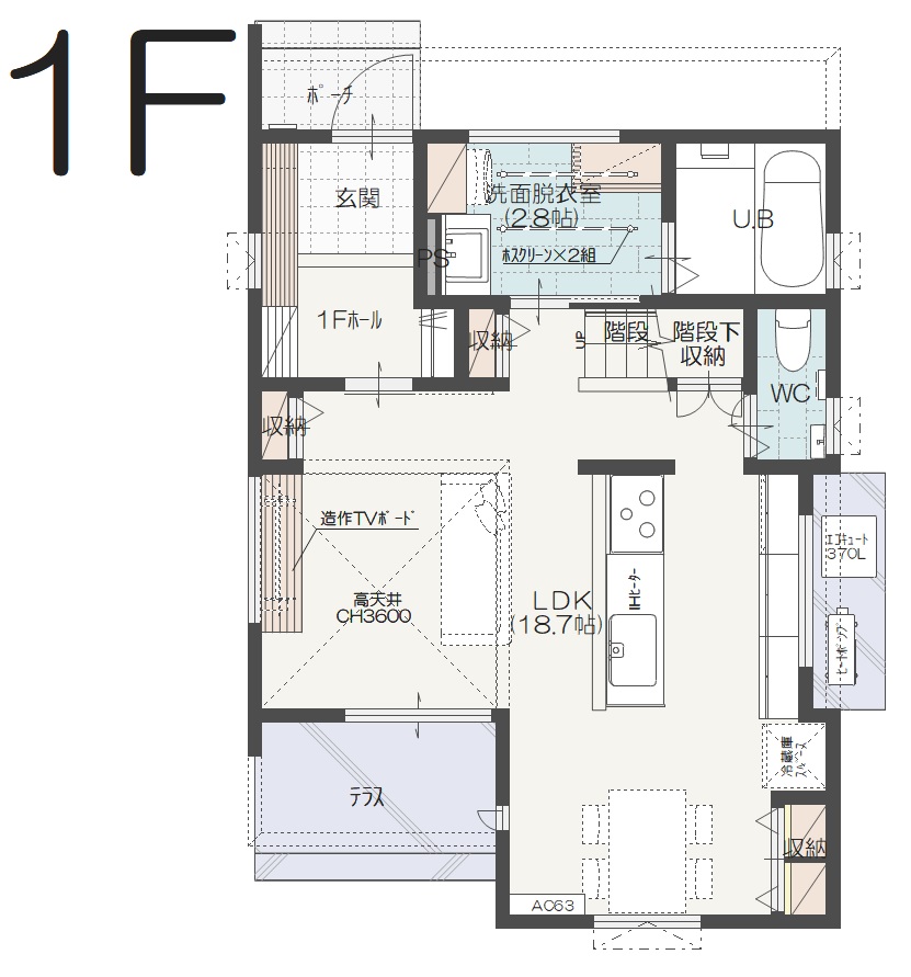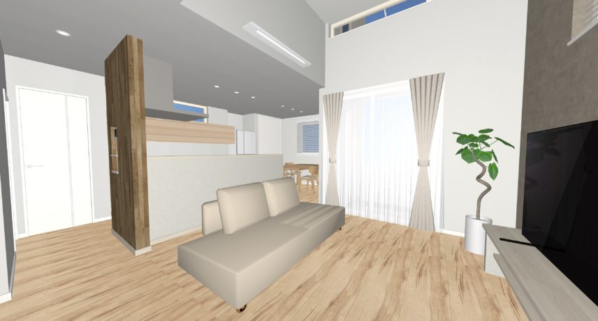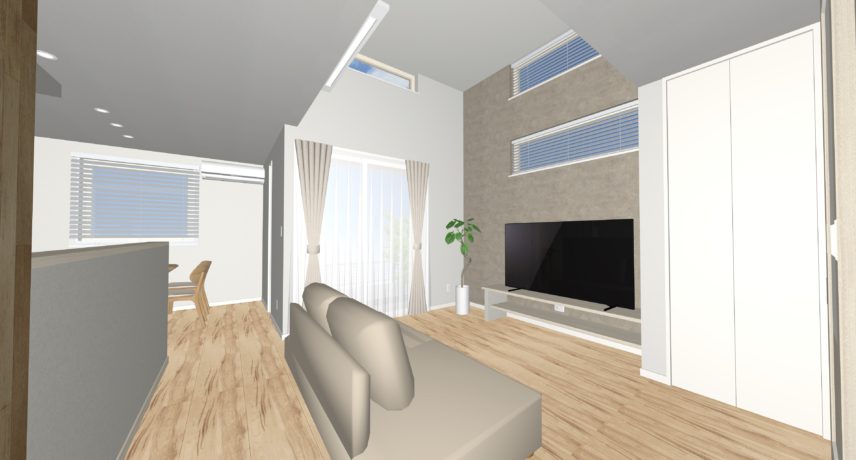 ・リビングはゆとりあのある高天井