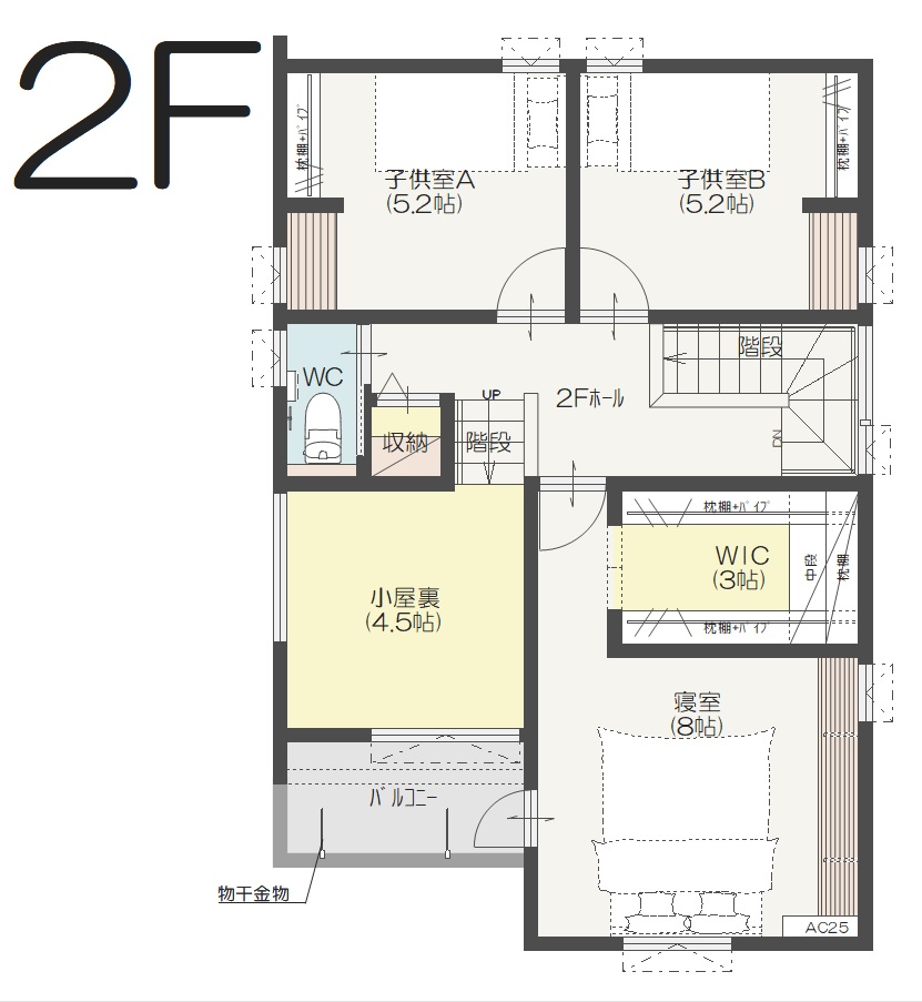 シアタールームや第2リビングとしても活用できる小屋裏。全体的に淡いナチュラルカラーでまとめたお家が完成いたしました。