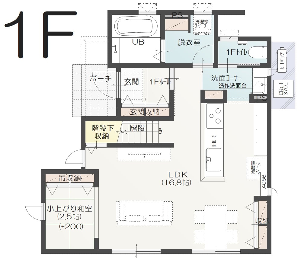 1階は家事動線を重視した使いやすい配置で、