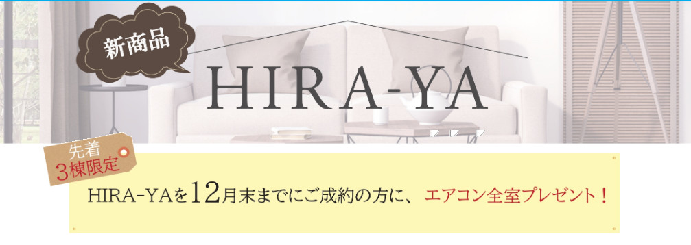 11月より、弊社新商品「HIRA-YA」にて新築住宅をご契約いただいた方を対象に、エアコンを全居室分プレゼント致します。