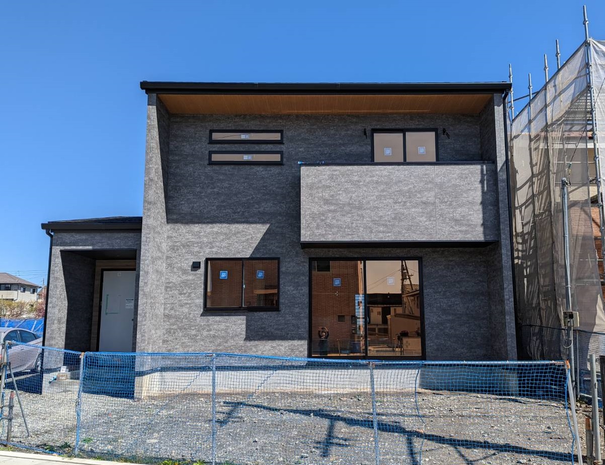 「ニュートラルカラー」×「木目」を基調とした今トレンドのおしゃれな外観。