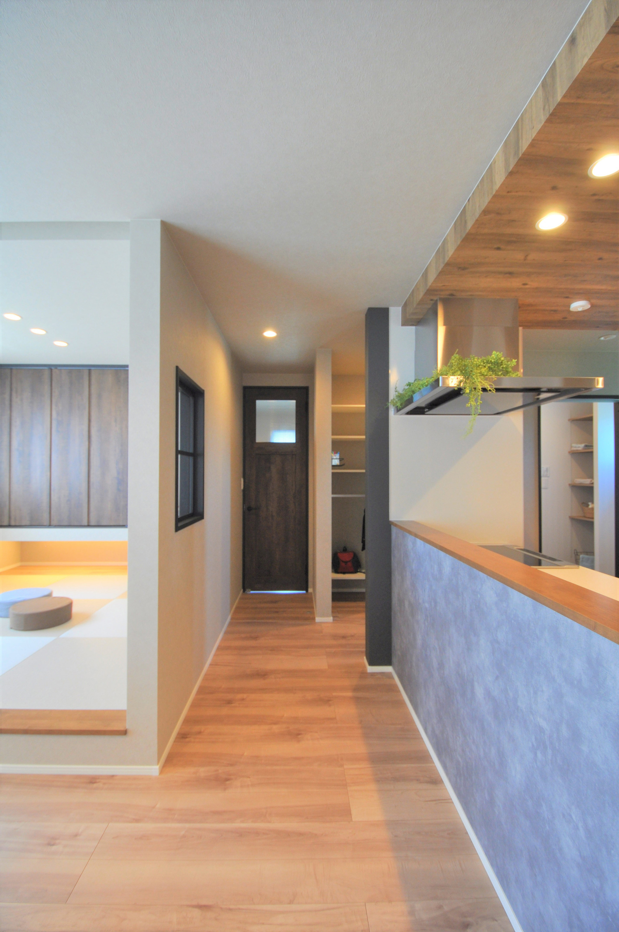キッチンから覗ける内窓付きの小上がり和室はお子様の遊び場としても使用でき、