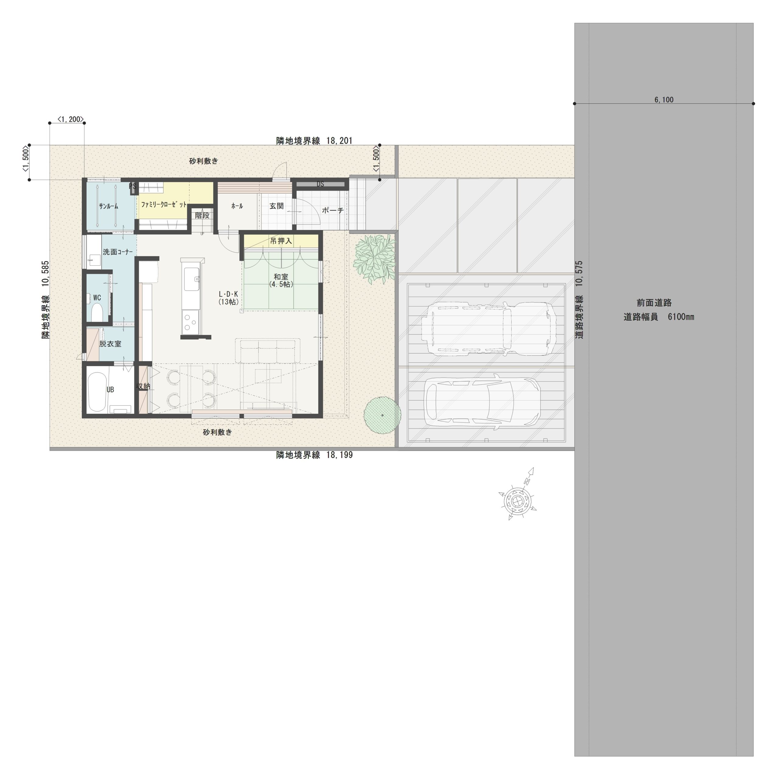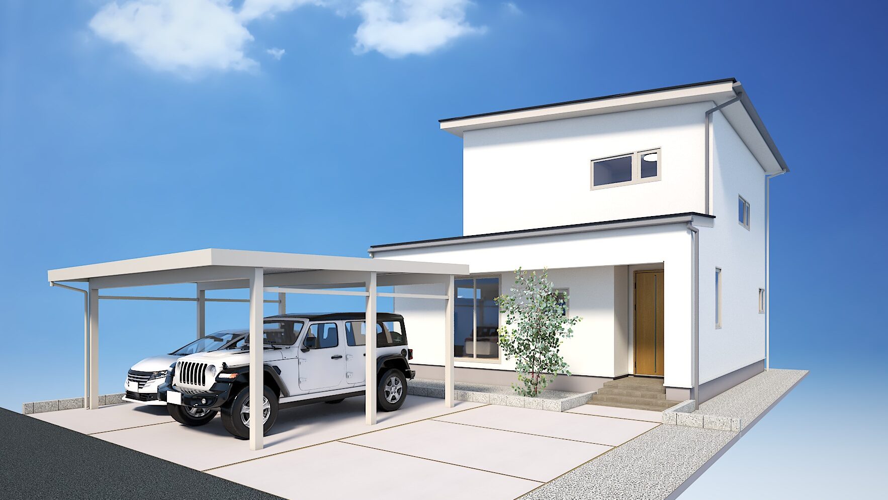 約60坪のゆとりある敷地に、駐車3台&2台用アルミカーポート付きの快適な住まい