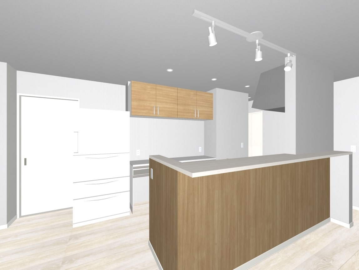 小上がりのお子さんを見守りながら立てるキッチンは、一歩横にパントリーもついて収納面も安心です。