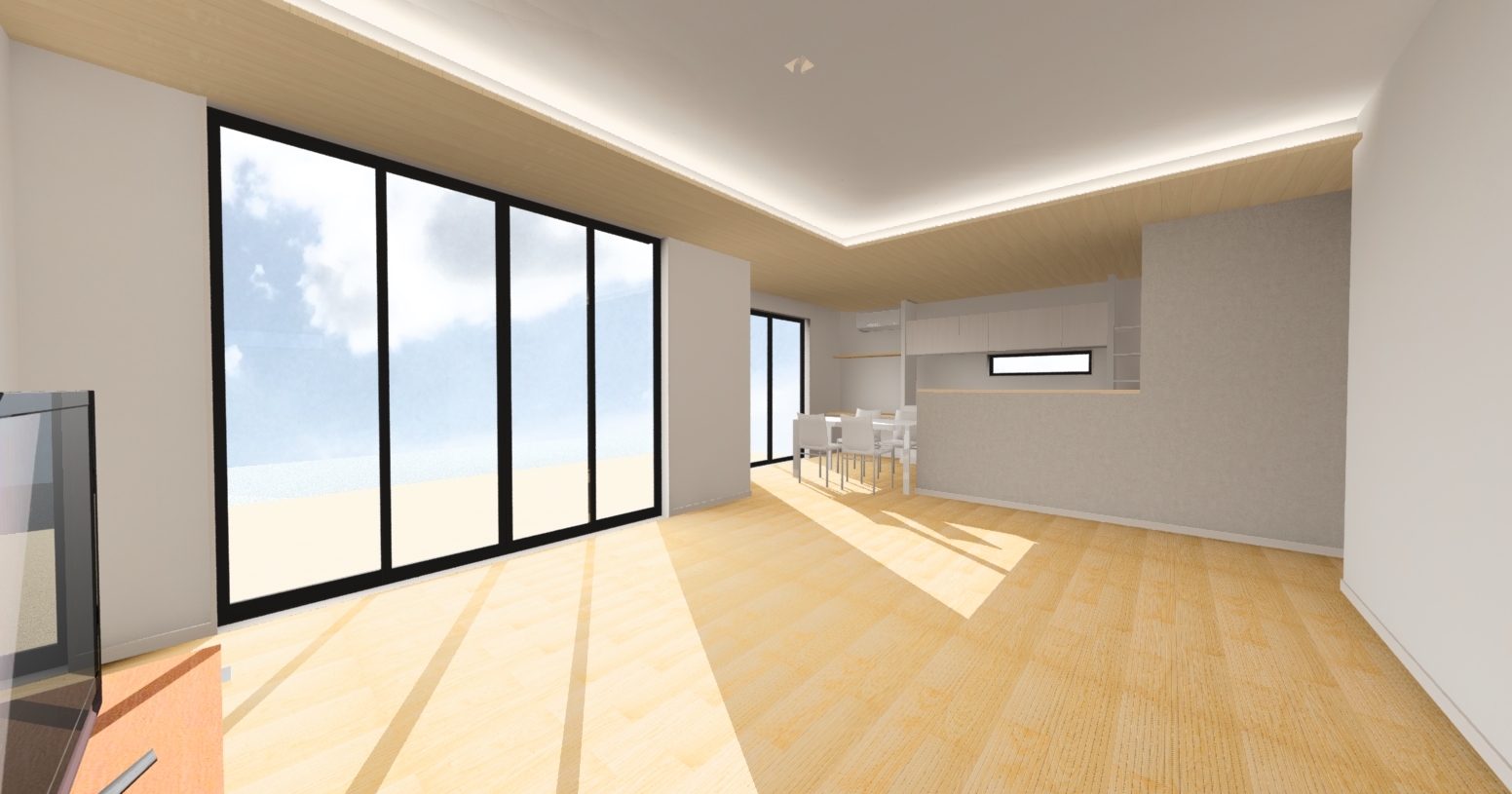 断熱はセルローズファイバーのZEH+仕様で抜かりなし!折り上げ天井と間接照明を配した23帖のゆったりとしたリビング空間は開放感たっぷり。ファミリークロークと水廻りは動線と使い勝手を考えて配置、さらにはリビングからは直接見えない配慮も嬉しい!機能性とデザインを両立させた家族みんなが暮らしやすい住まいをぜひご覧ください。