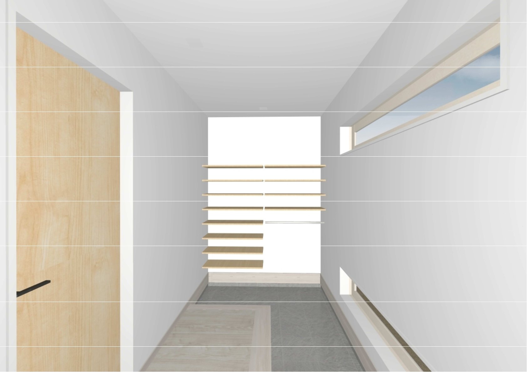 玄関近くにはロッカールームを備え、帰宅後すぐに荷物を収納できるため、リビングはいつもすっきり。
