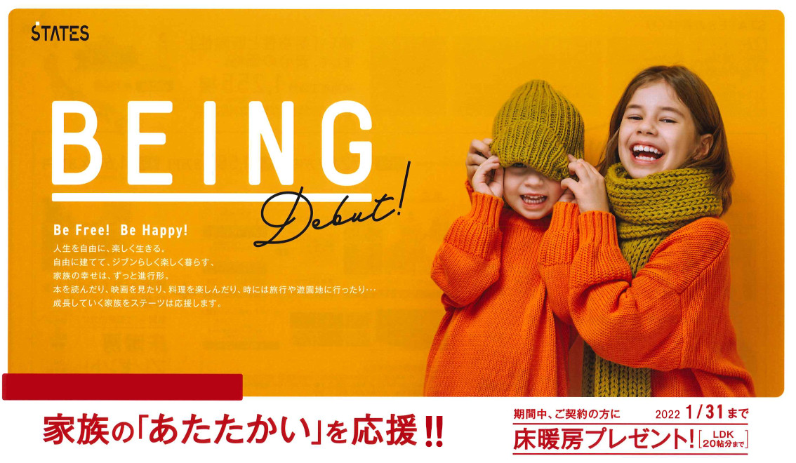 12月より、弊社商品「BEING HS」にて新築住宅をご契約いただいた方を対象に、床暖房が無料で追加できるキャンペーンを開催致します。