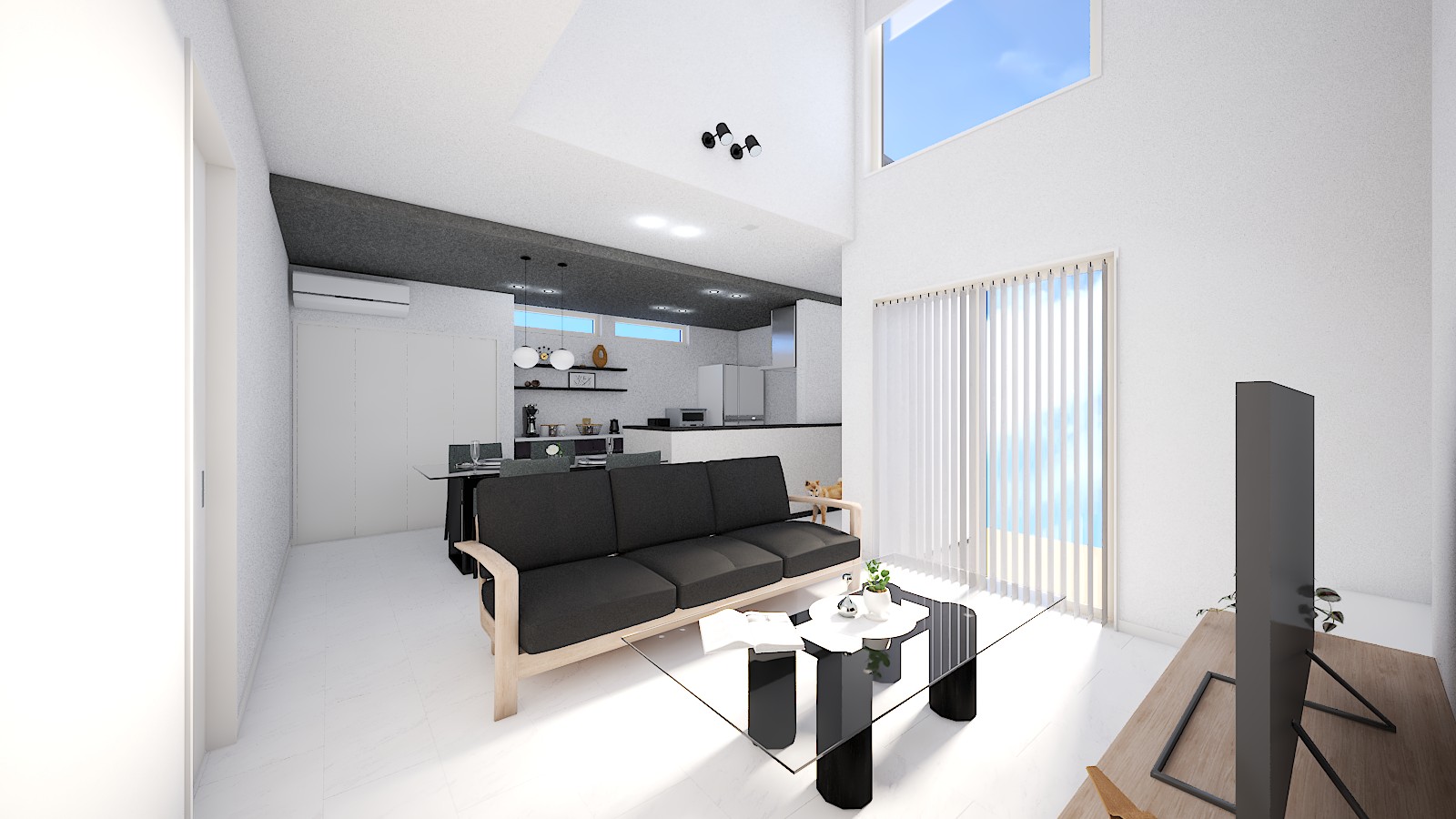 白を基調にブラックを効かせた上質デザイン。ご夫婦それぞれの“好き”を詰め込んだ、特別な住まい。