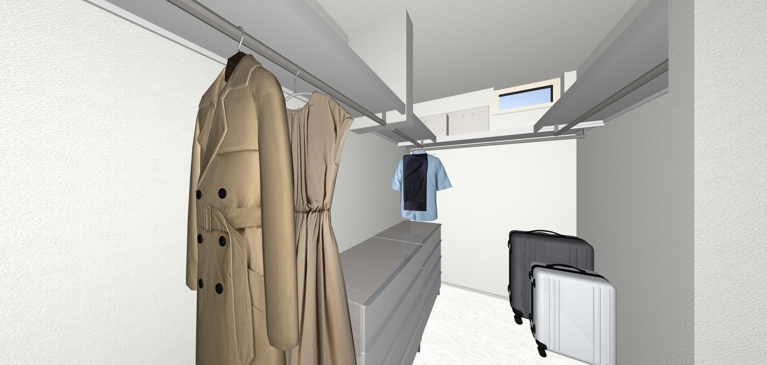 ・脱衣室⇒洗面⇒広いサンルーム⇒大容量のファミリークローゼット、と一連の家事動線がスムーズになることで、時間にも心にもゆとりが生まれます。