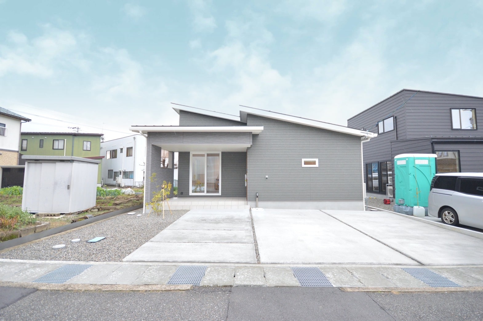 60坪以上の広い敷地に3台分の車が置ける平屋住まいが完成。