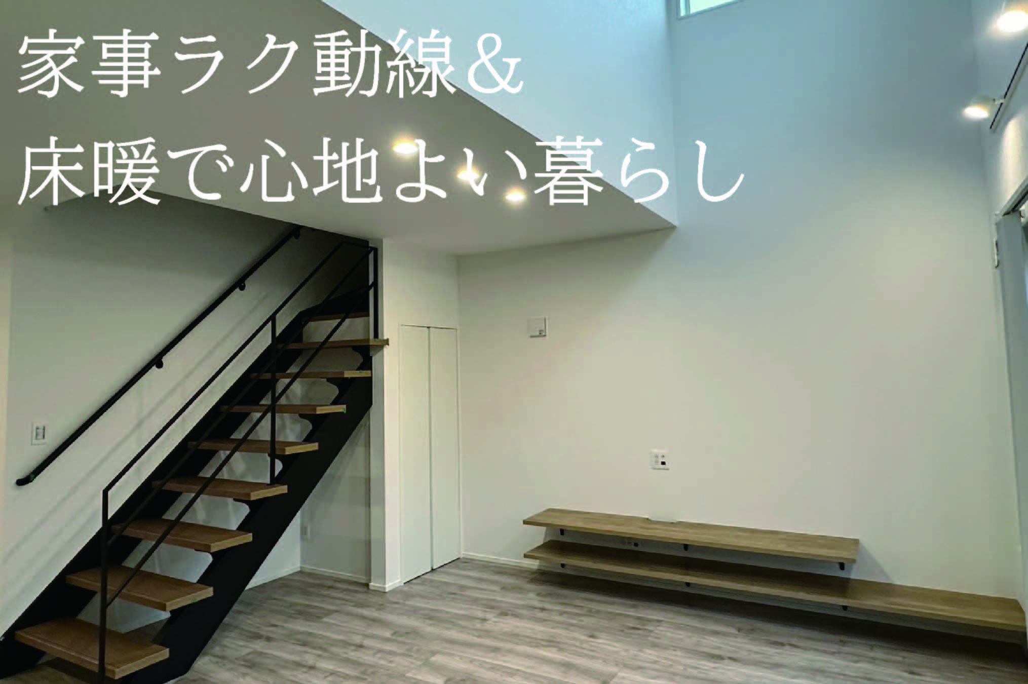 家事の負担を軽減した間取りで、ポカポカ床暖のあるお家が完成しました。