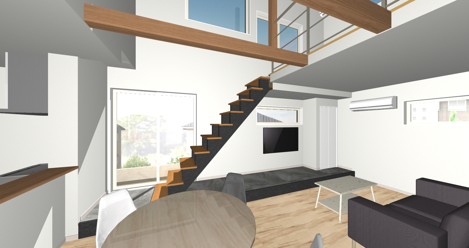 ・リビング上部は約6帖の吹抜け梁があり、開放感があります。