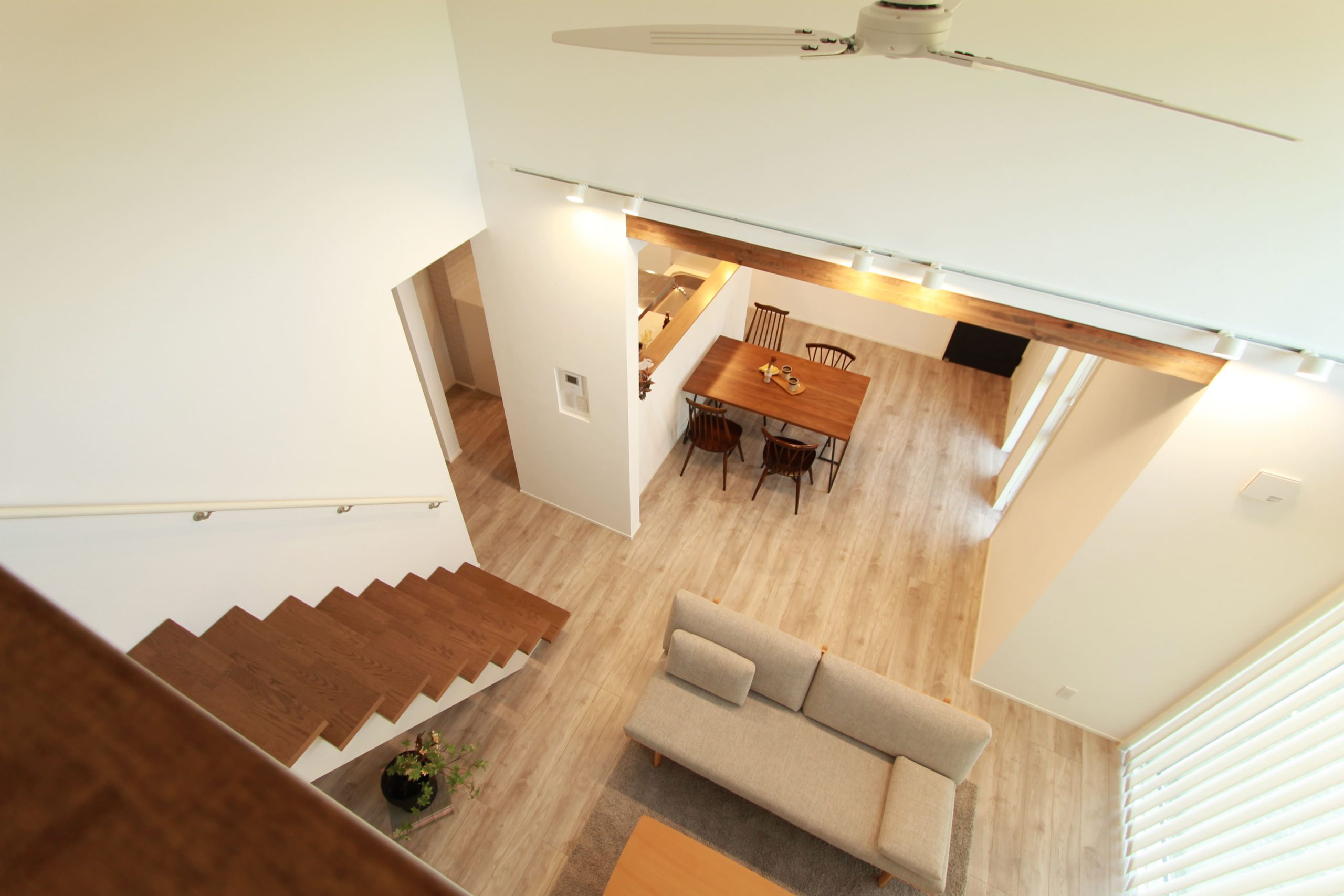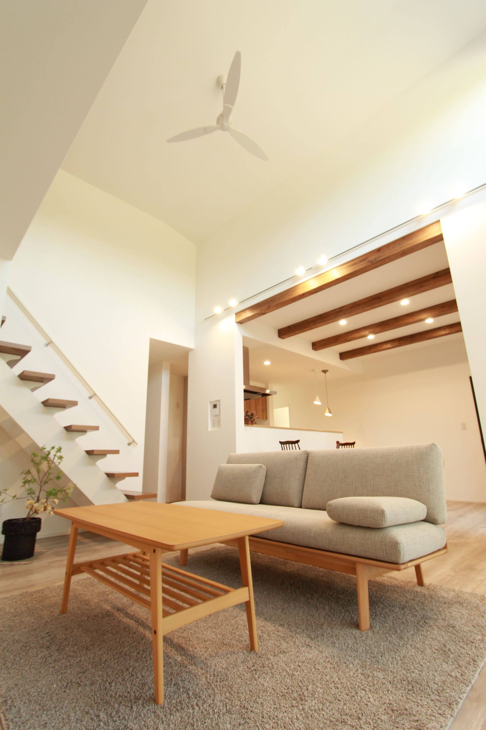 勾配天井を利用した開放的な大空間リビングで快適に過ごせます。