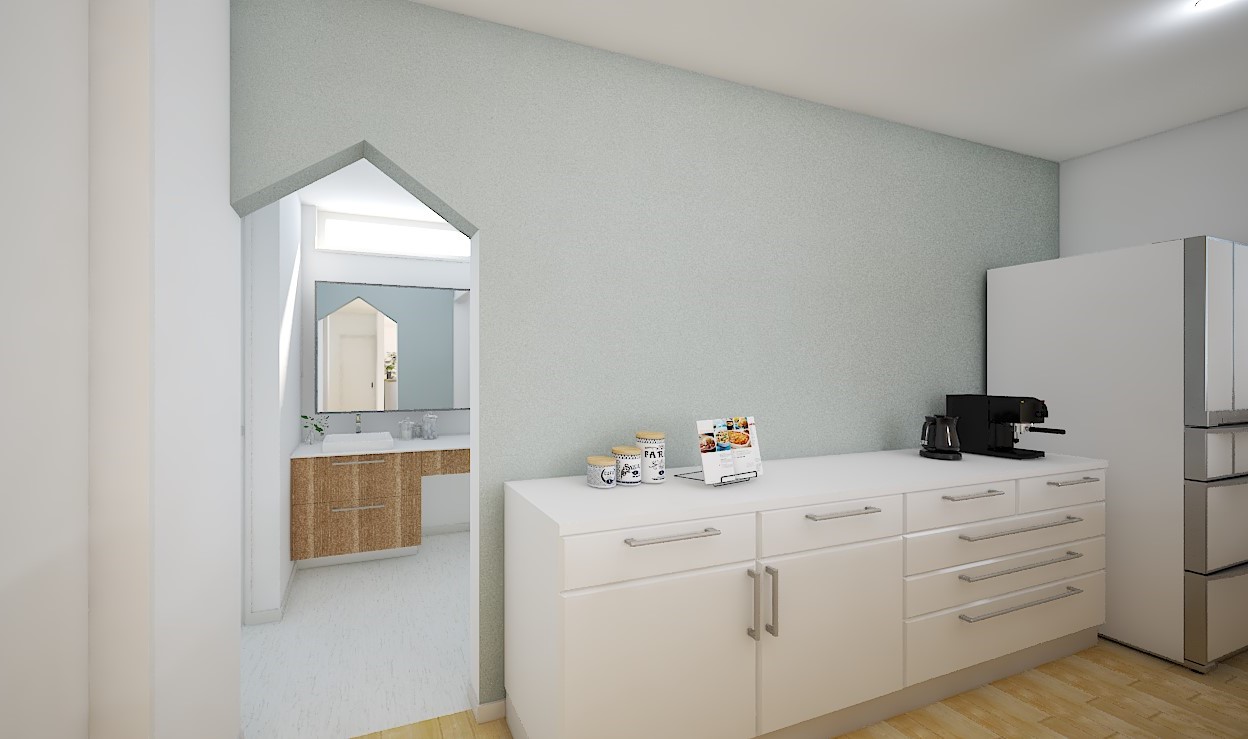 ・W=2700カウンタータイプのカップボードは収納量だけでなく、キッチンをスッキリと見せてくれます。