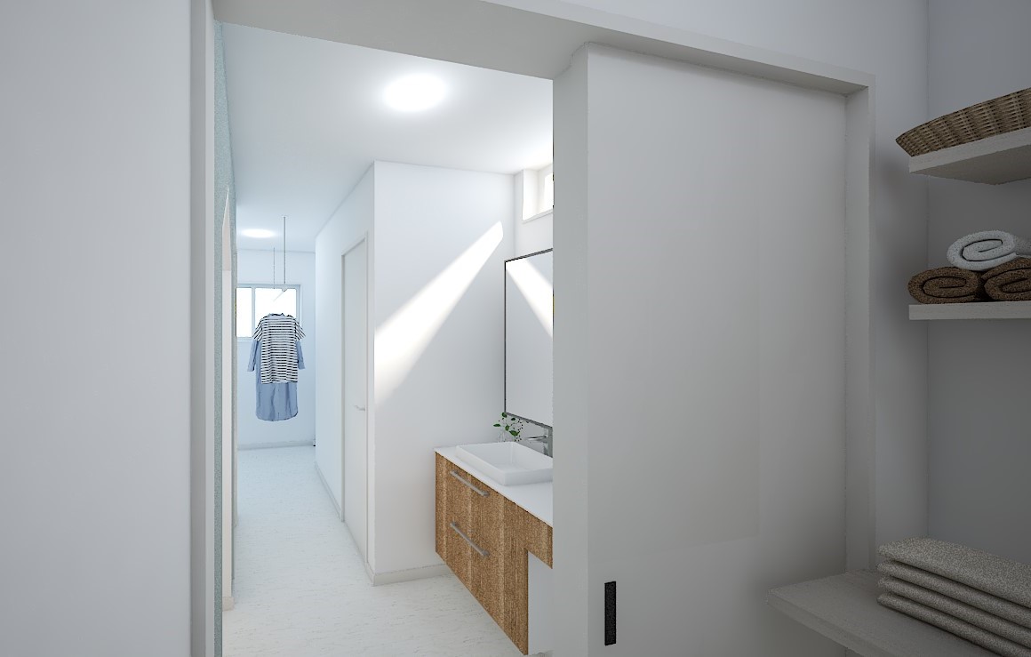 ・ストレートに配置された水回りの家事動線は効率化UP。