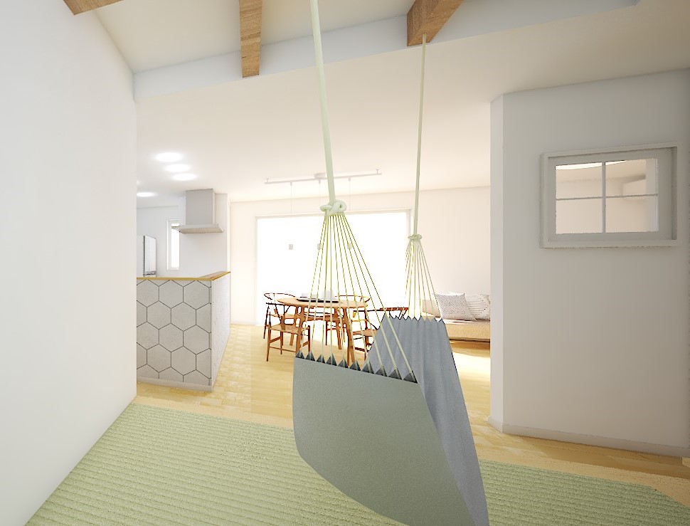 遊び心をくすぐるハンモックのあるお家が完成しました。