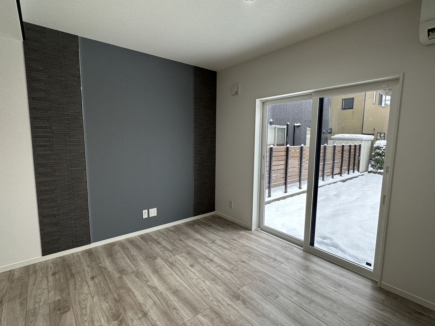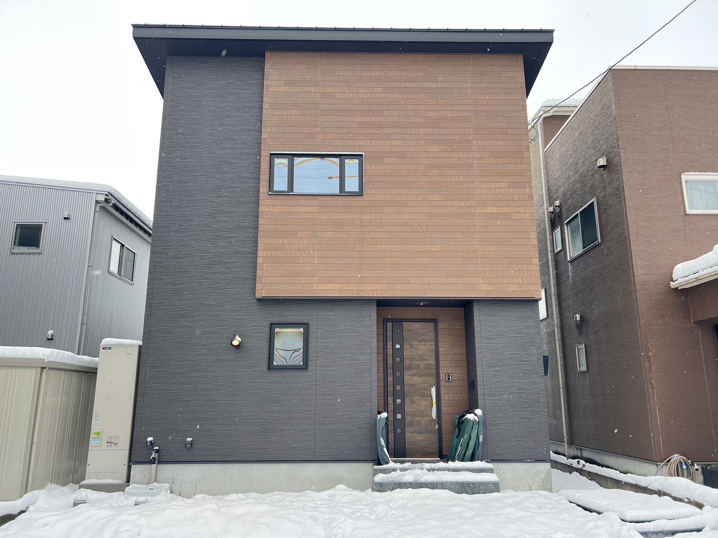 ツートンカラーのシンプルなデザインの家が完成。ゆったりと広い玄関の横には大容量のシューズクロークを設けて折り上げ天井のリビングのTVスペースは一部タイル貼りで空間のアクセントにしました。1Fには来客用として、多目的に使える洋室・各居室には十分な収納スペース。2Fには広い納戸とウォークインクローゼットがあり、お部屋をいつもスッキリと保つことができます。お家全体の内装はスタイリッシュに仕上がっており、お部屋ごとに、こだわりのクロスを貼ることで一人一人の個性が際立ちます!