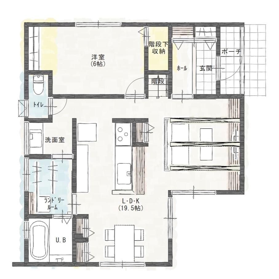 高さ2.7mの高天井の開放感あるリビング空間。 一直線で繋がる水回りは回遊動線で家事がしやすく奥様を助けてくれます。シューズクロークやパントリー、ウォークインクローゼットもあり収納も豊富。 この機会にぜひご覧ください!
