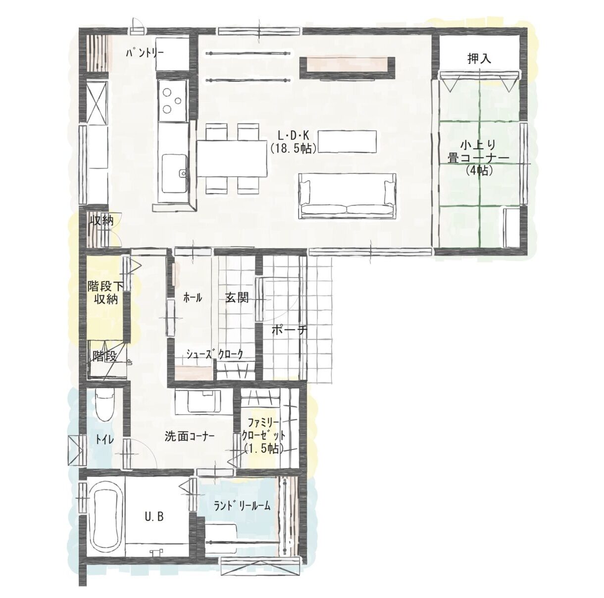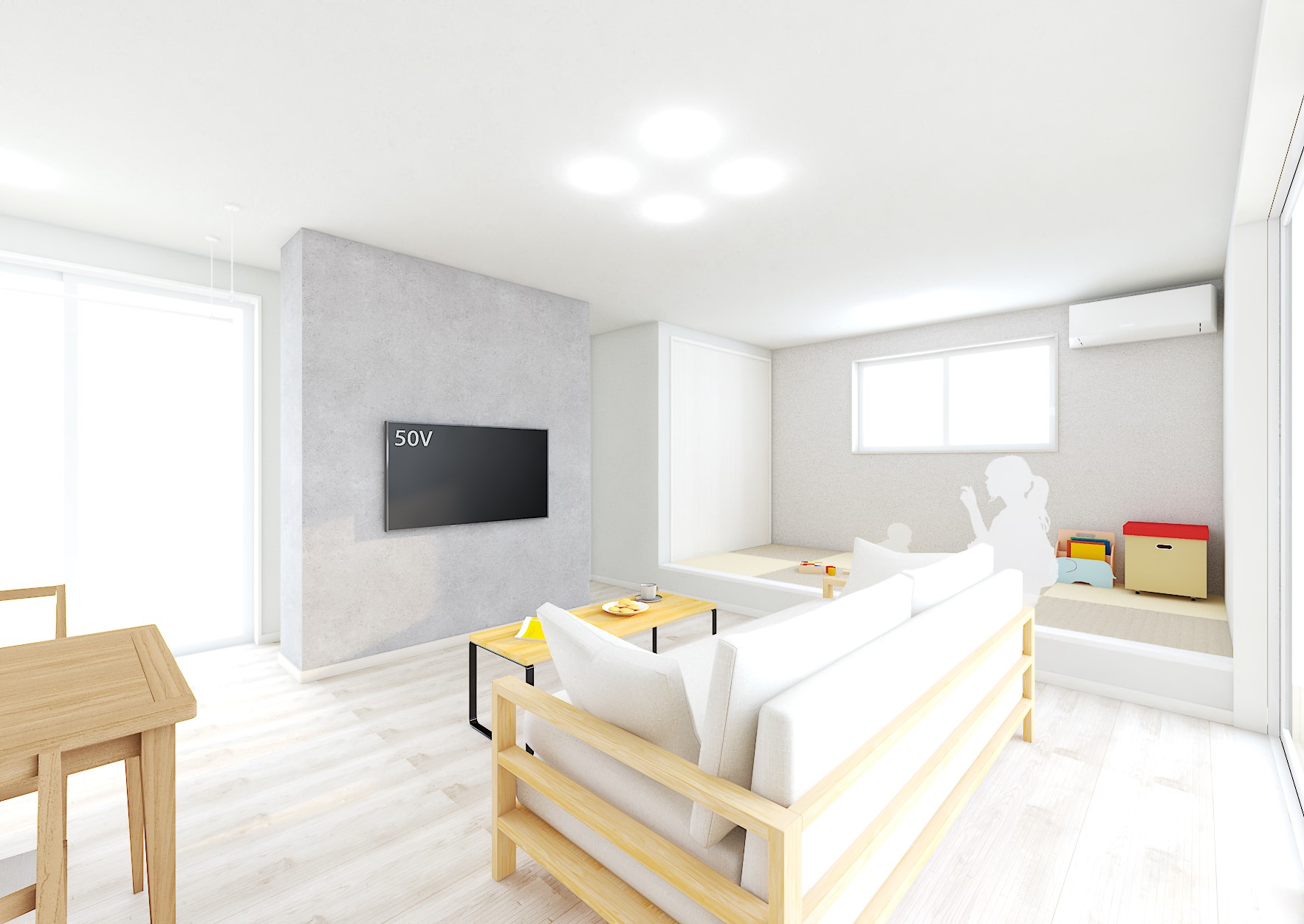 リビングに4帖の小上り畳コーナーがあり開放感ある空間を演出しております。