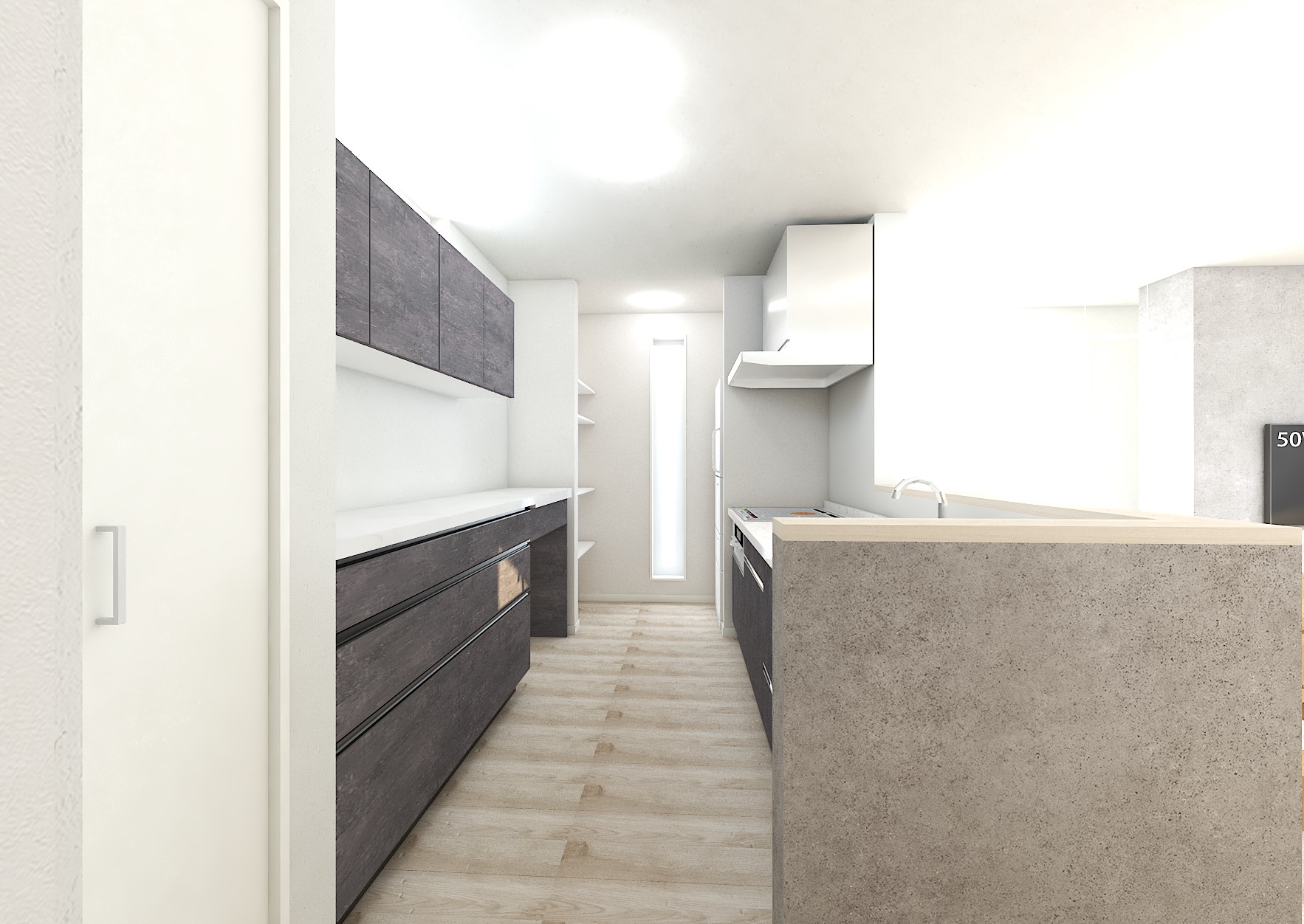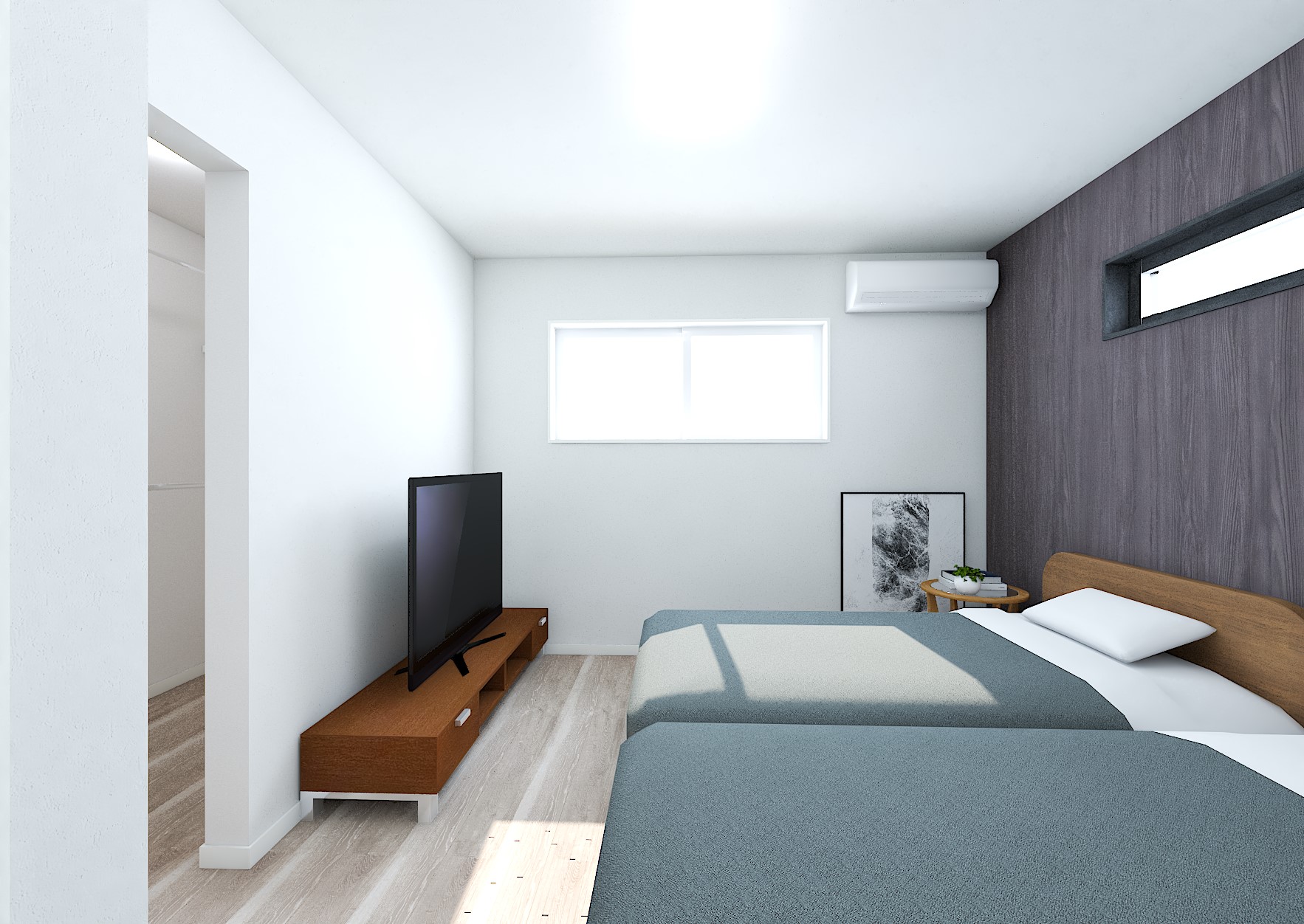 また、壁掛けテレビ用の収納や冷蔵庫が見えないように工夫されたキッチン、ワイドな洗面台など各部屋に散りばめられたアイディアが見所です。