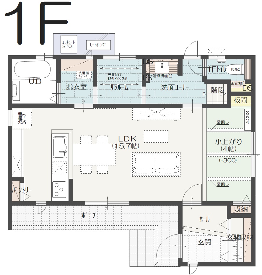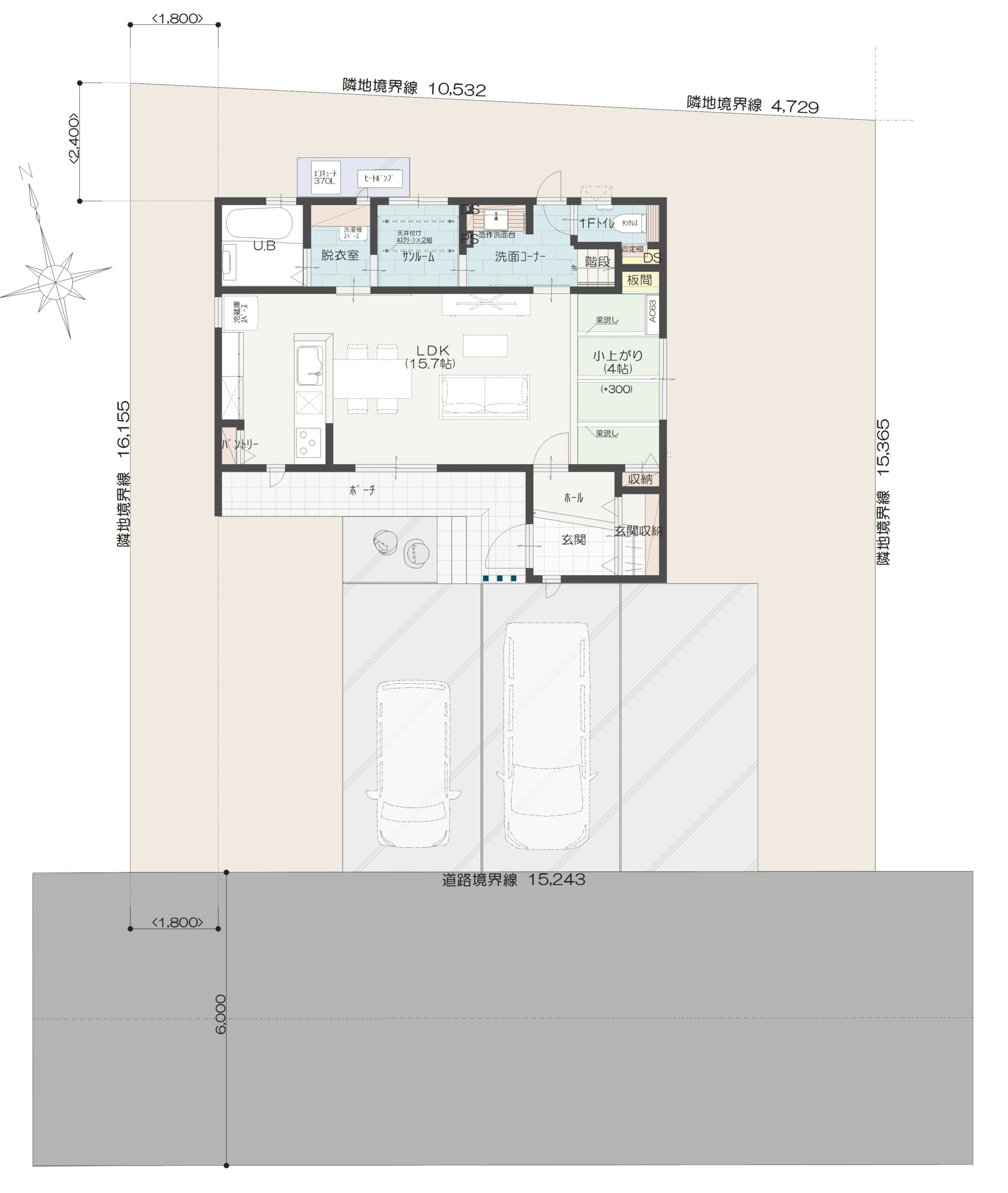 帰宅してまっすぐ洗面スペースへ。水回りも一直線で繋がる動線で快適な家事動線になります。