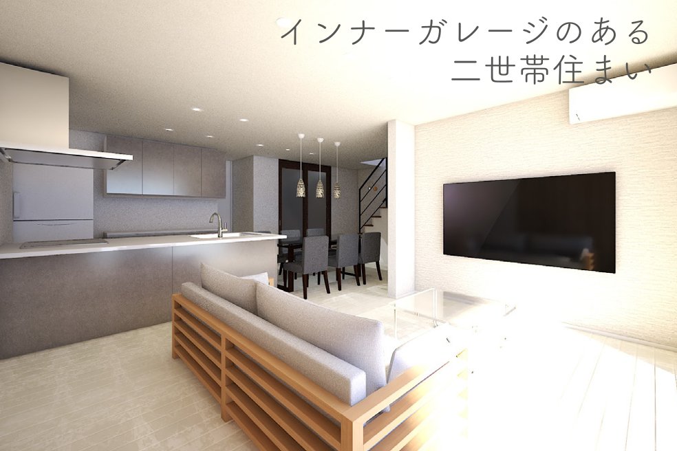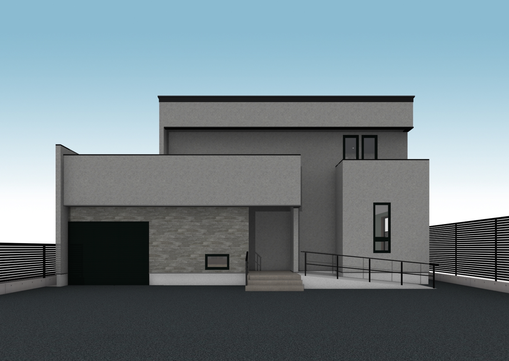 吹付を採用した外観は、重厚感がありおしゃれに仕上がりました。1階2階に各居室を設けた2世帯住宅、水回りは共有ですが必要に応じて2階にもキッチンがつけれるように工夫がされています。