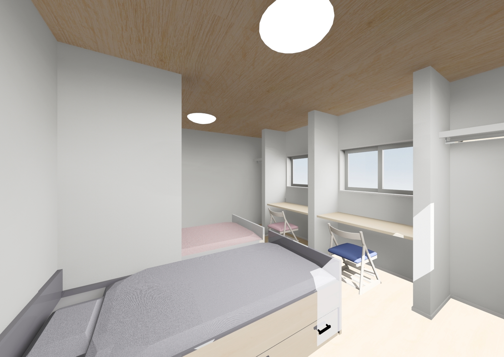 子供部屋は将来間仕切り可能な大空間!カウンター付きで勉強机の用意も不要