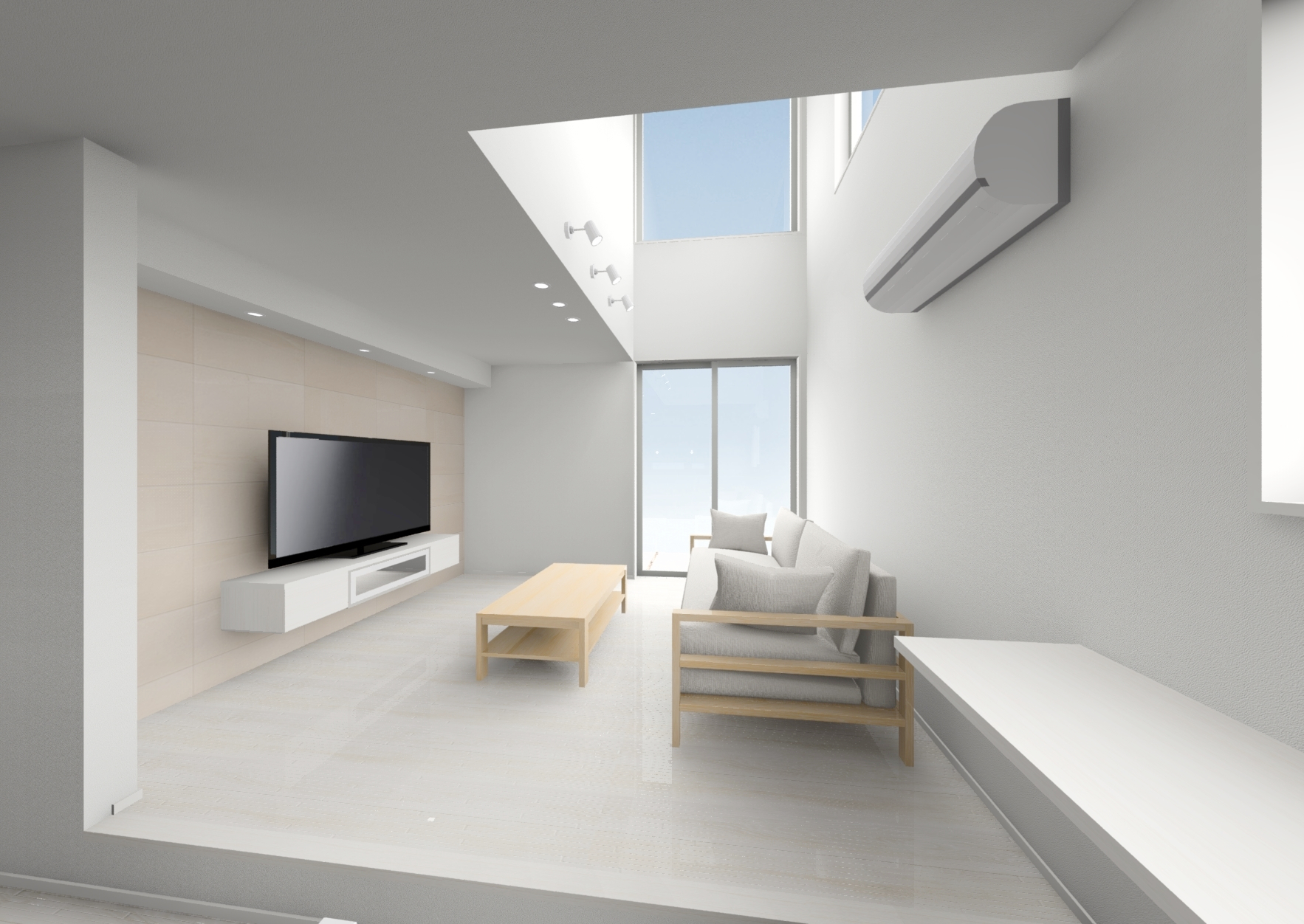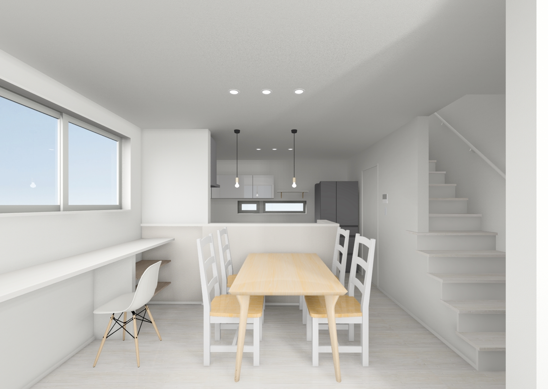 小上がりリビングはダイニングの家族と目線を合わせやすい高さで会話がしやすい設計