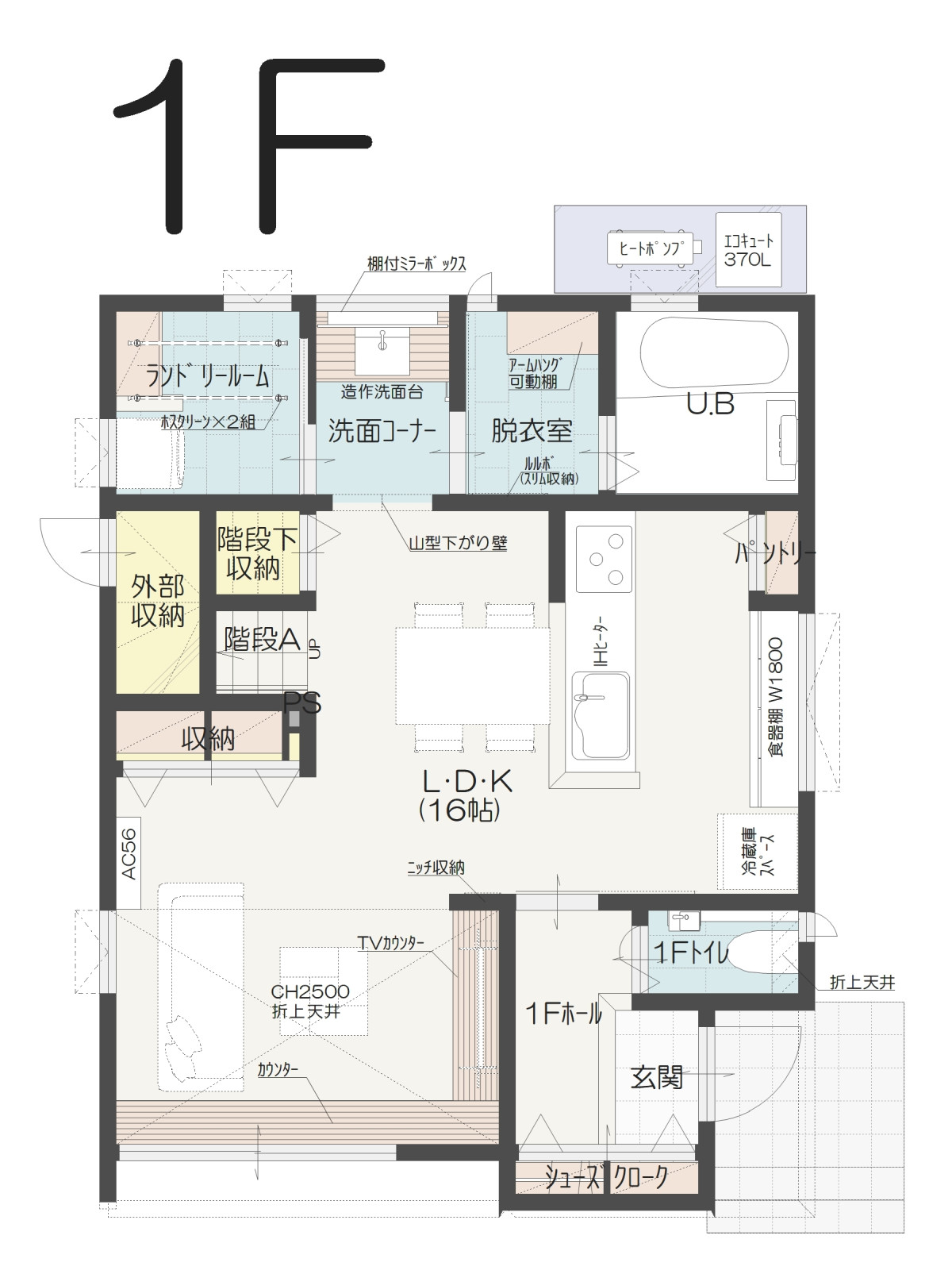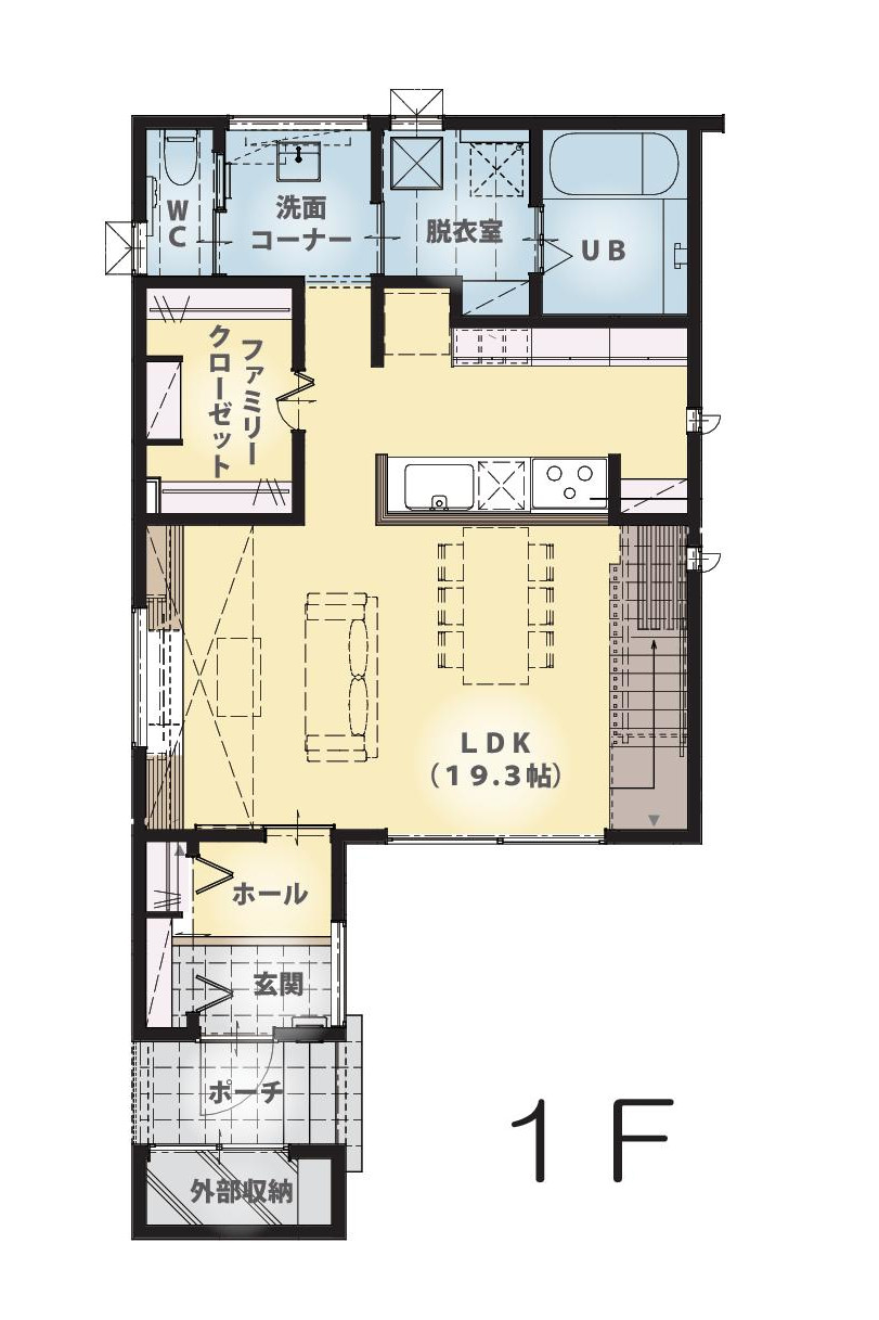 浴室、脱衣室、洗面、洗濯室と一直線に繋がった使いやすい家事動線や、固定階段式で荷物の出し入れもラクラクこなせる6.7帖分の小屋裏収納など、見どころまだまだあります!